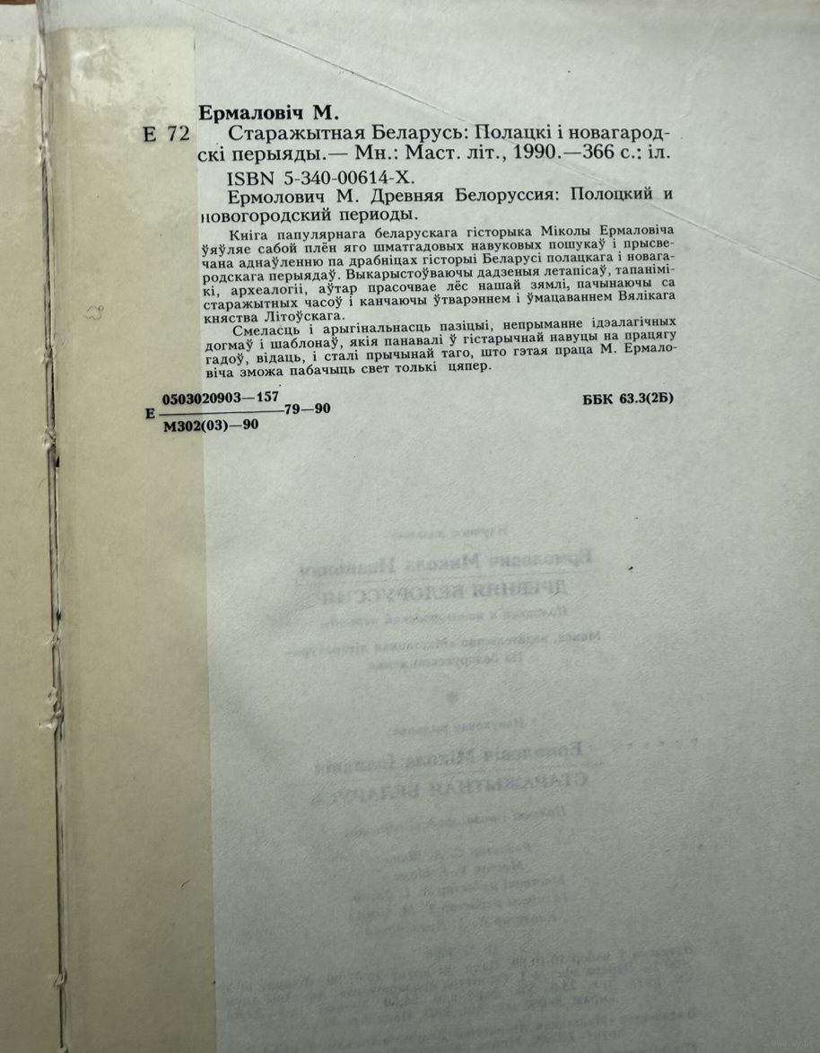 Мікола Ермаловіч Старажытная Беларусь Полацкі і Новагародскі перыяды. першыя і апошнія старонкі падклеяны скотчам. глядзіце фота