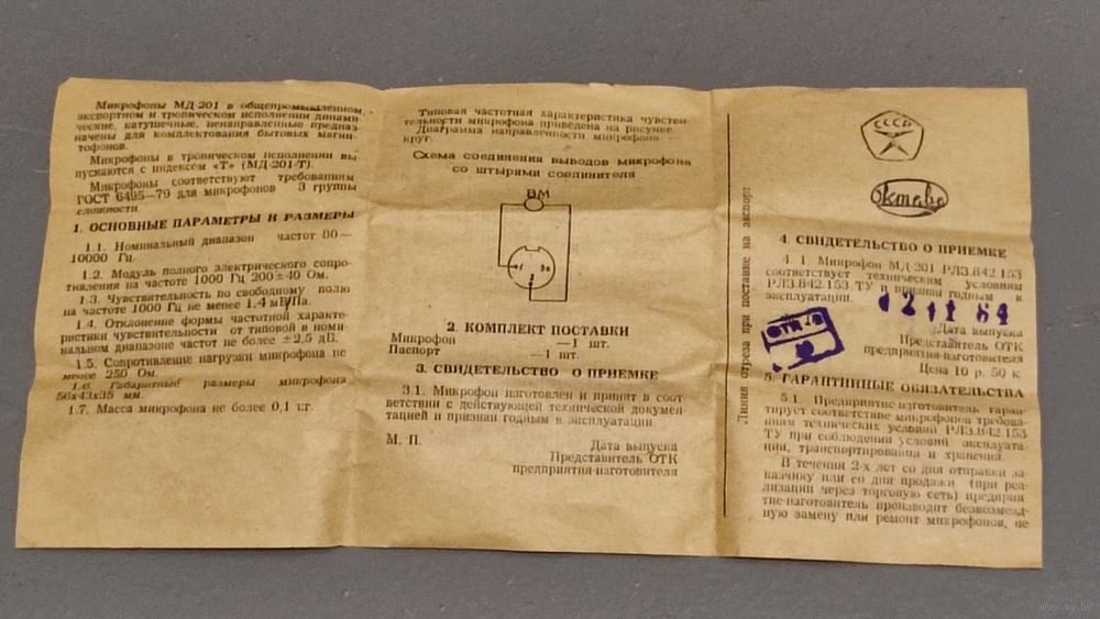Микрофон МД-201 в коробке с паспортом