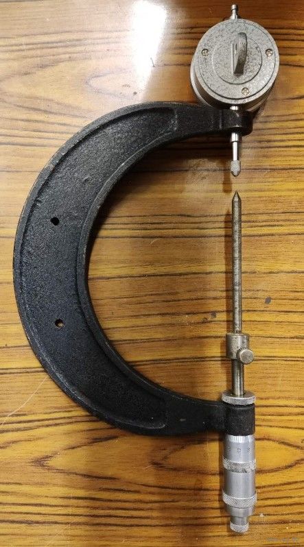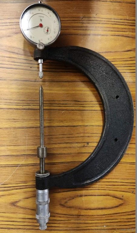 Микрометр на измерительной скобе с часовым индикатором. СССР.