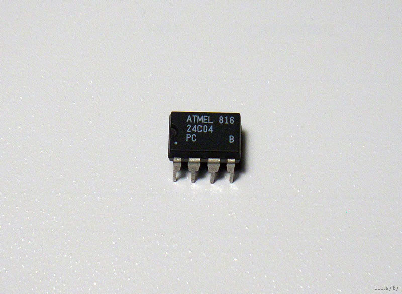 Микросхема Atmel 24C04 - чип с памятью типа EEPROM емкостью 4 Кбит, что соответствует 512 байтам данных, используется для хранения данных в различных электронных устройствах.