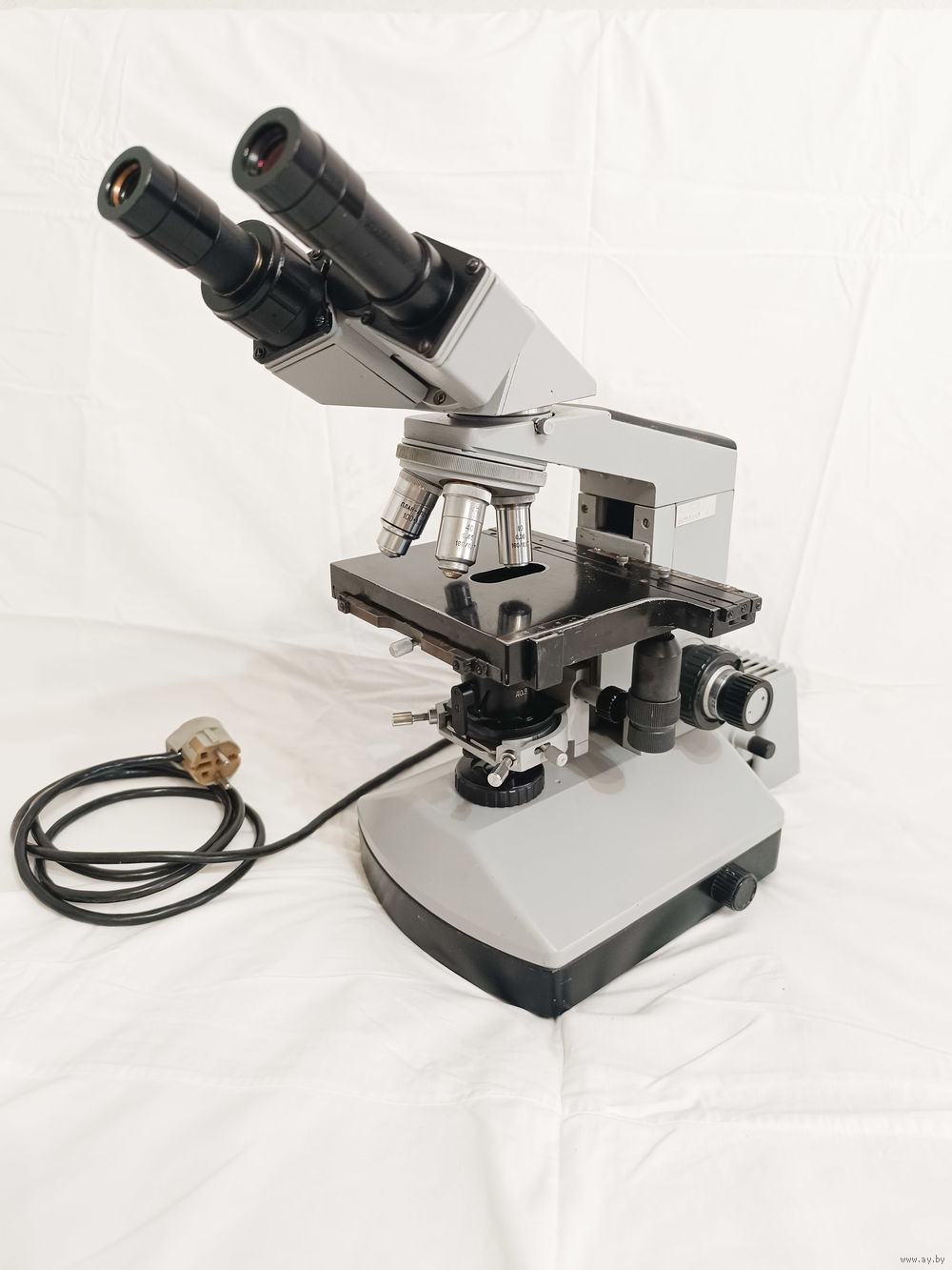 Лампа галогенка, 6в 30 Вт, света предостаточно на всех увеличениях. Есть запасная в комплекте. Подсветка регулируется.