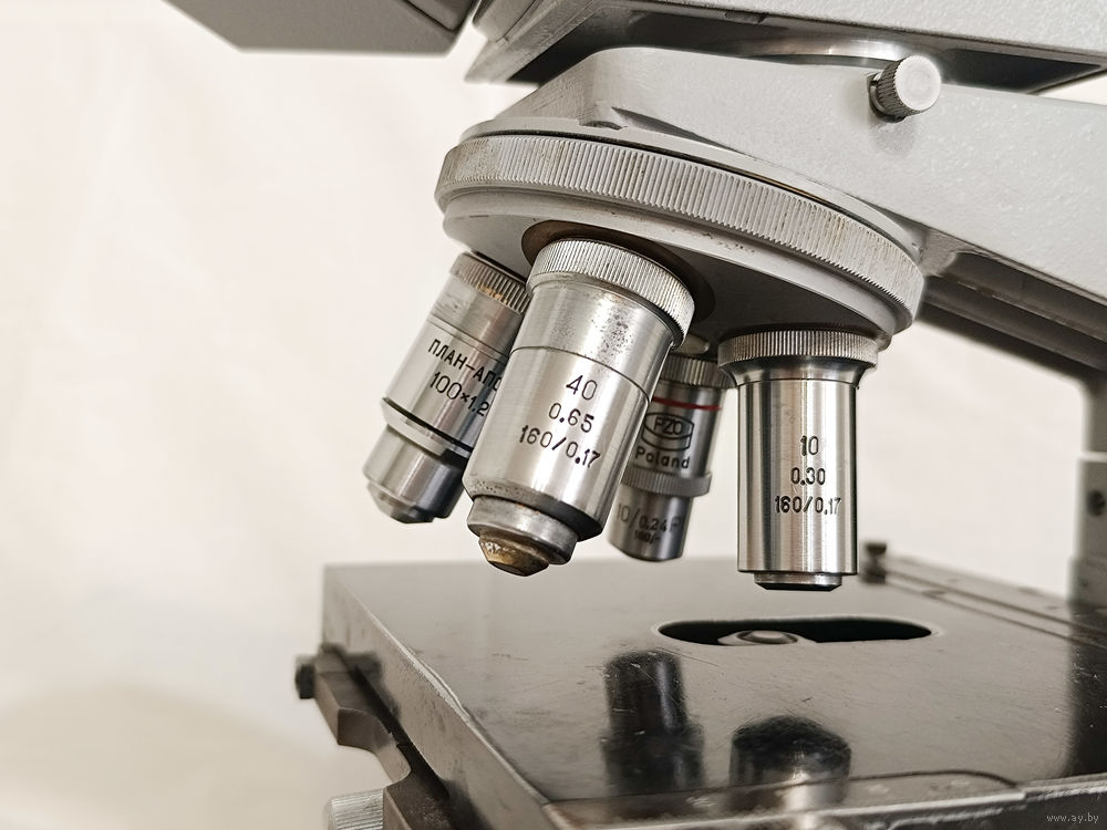 Объективы 10/0.30, 40/0.65, 100/1.25. Объективы поздней серии ЛОМО на длину 45 мм, улучшенная картинка, просветляющее покрытие.