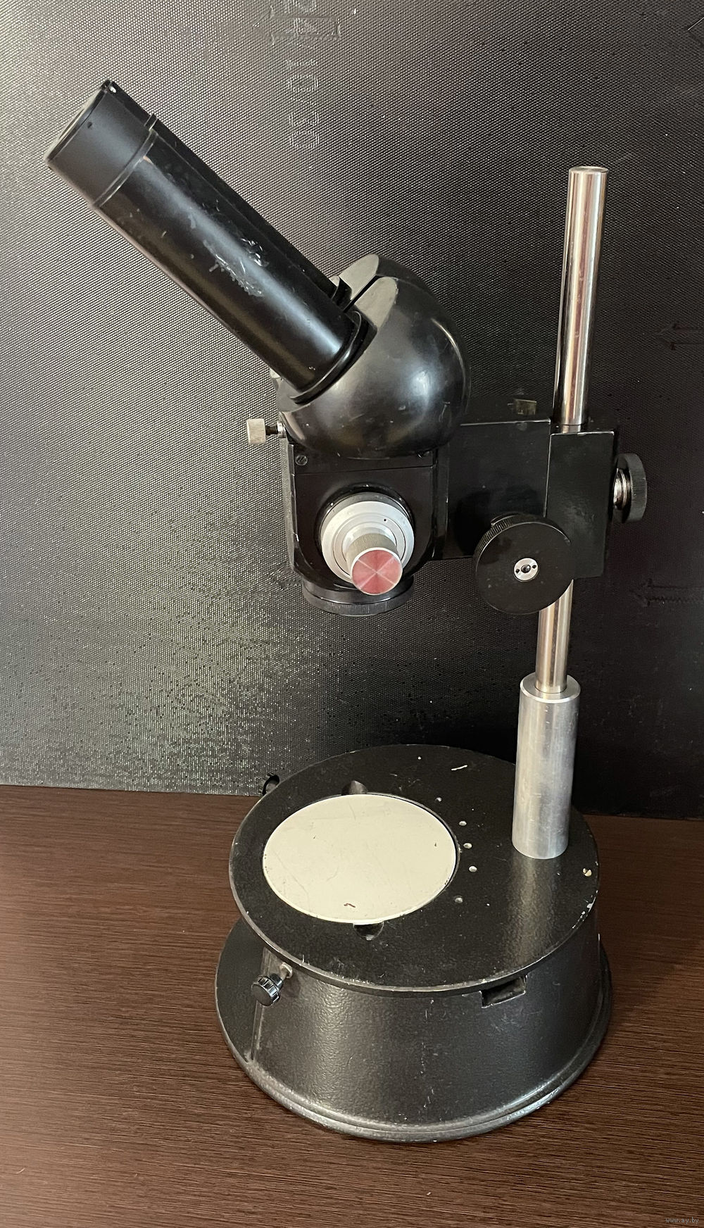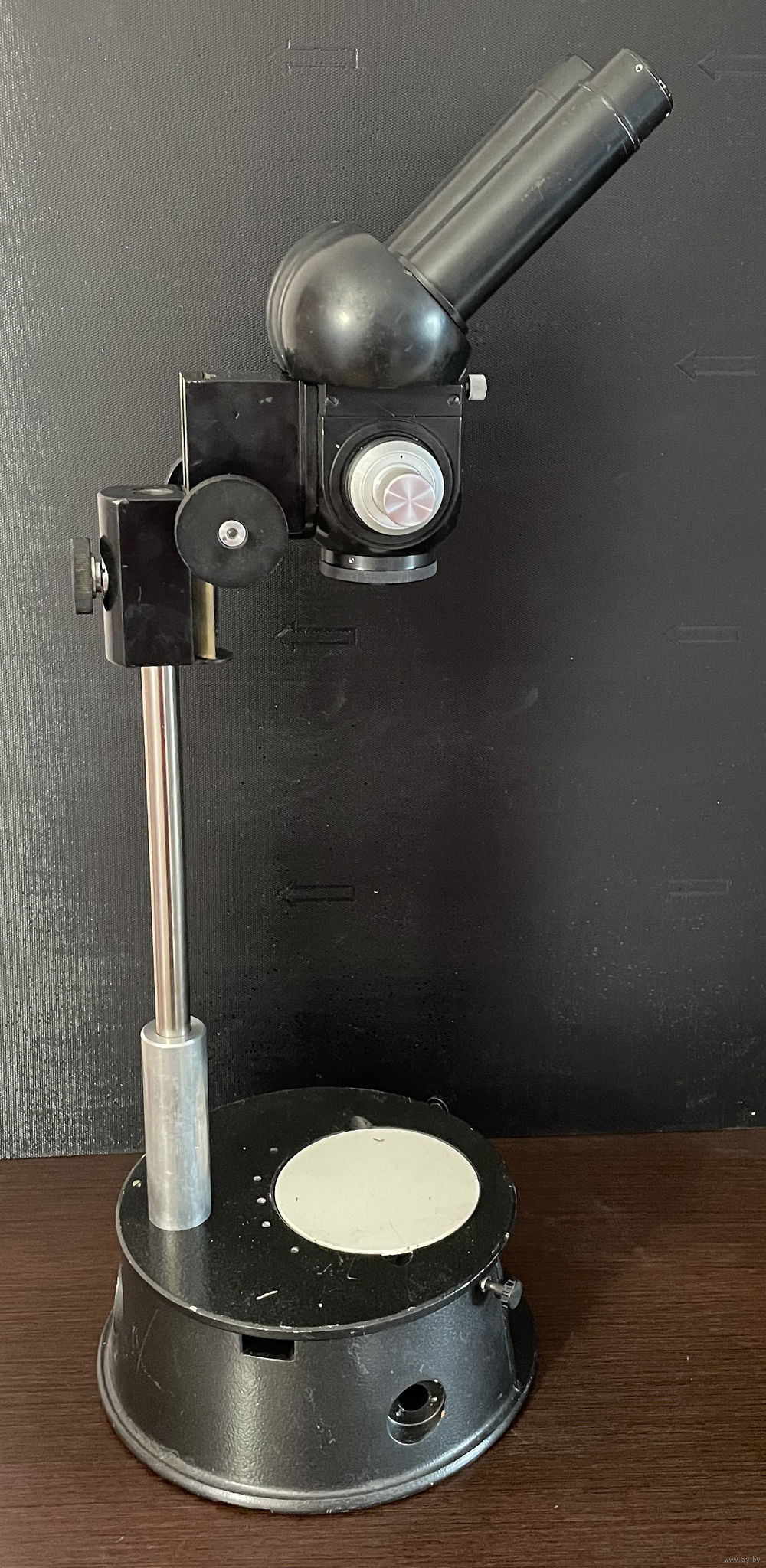 Микроскоп в рабочем состоянии. На первых фото микроскоп установлен в рабочее положение с расстоянием до объекта 145мм, на последнем фото - максимальная возможность штатива. Отлично подходит для ювелирных, реставрационных работ, для ремонта телефонов и другой техники. Есть вопросы , звоните.