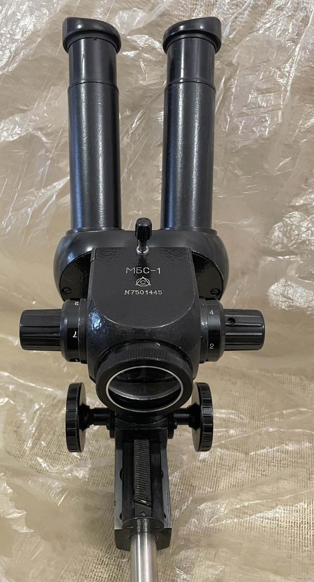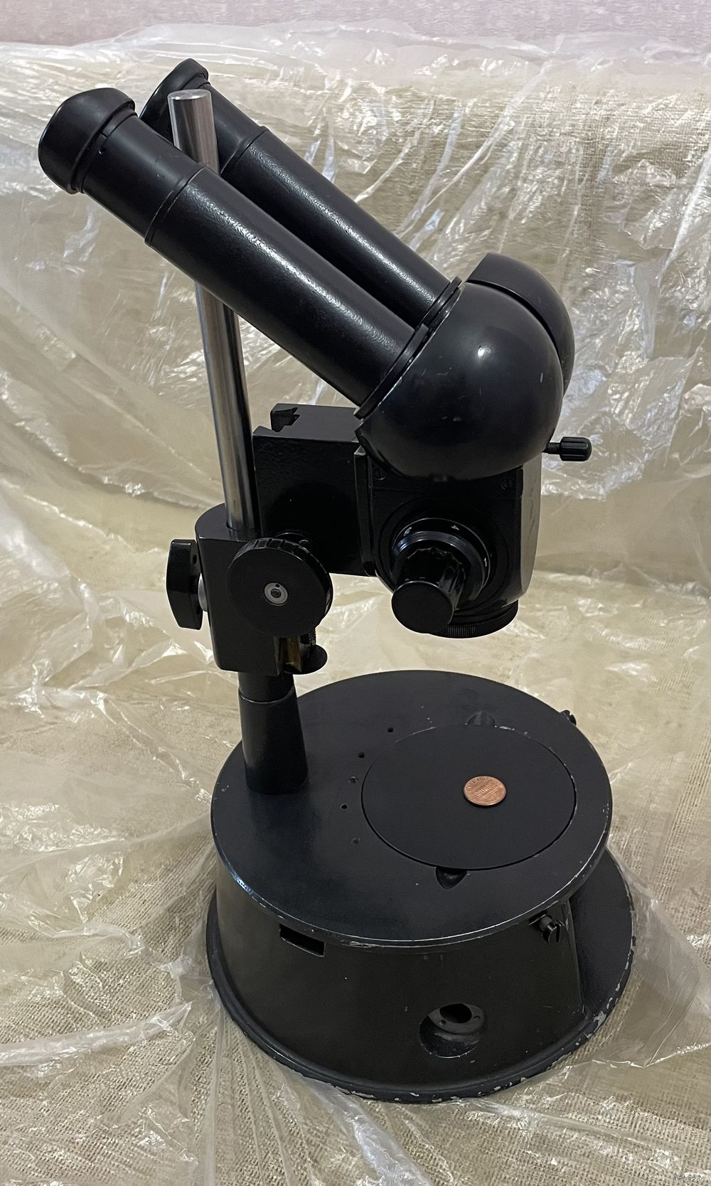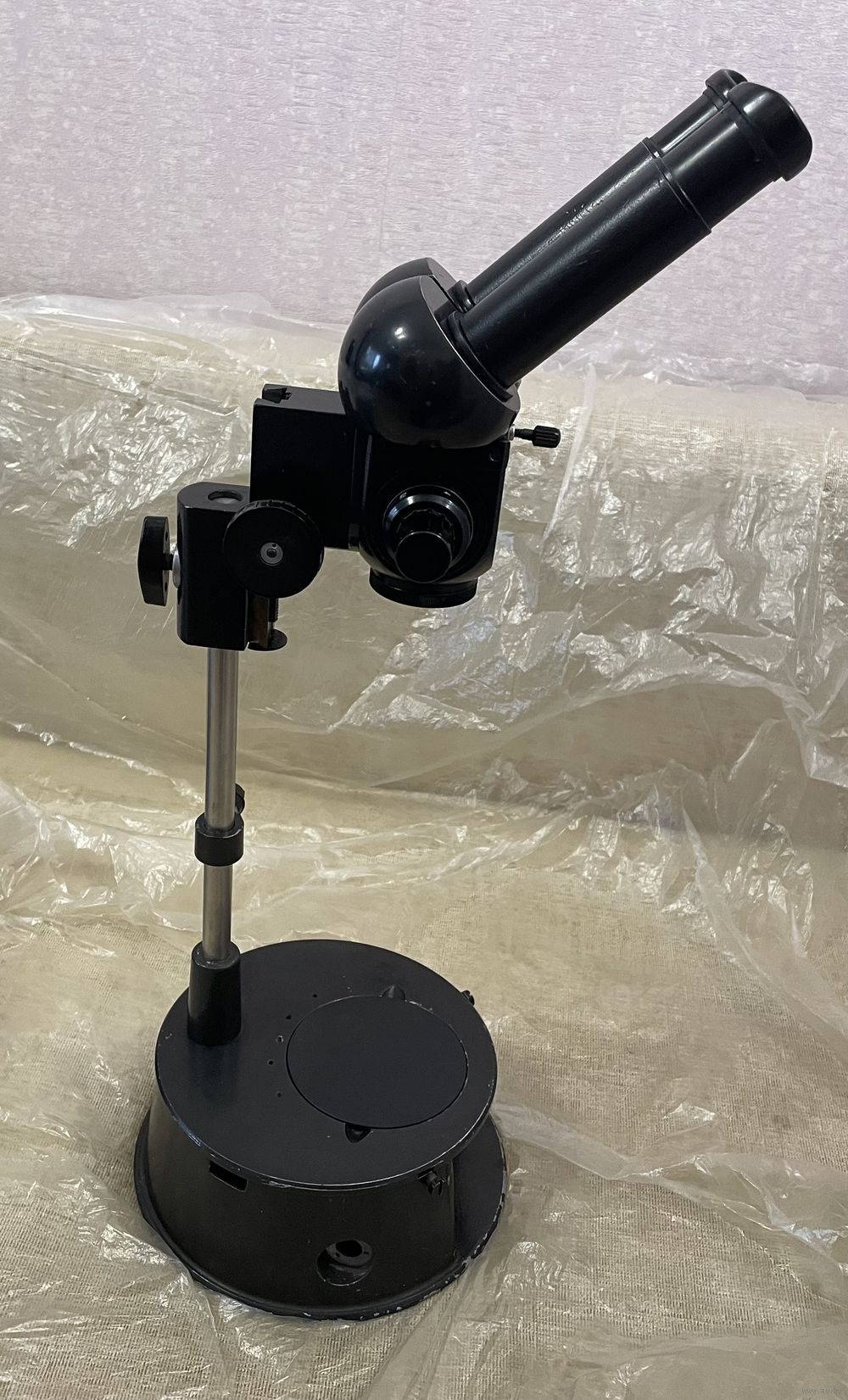 Микроскоп в рабочем состоянии. На первых фото микроскоп установлен в рабочее положение с расстоянием до объекта 145мм, на самом первом фото - максимальная возможность штатива. Отлично подходит для ювелирных, реставрационных работ, для ремонта телефонов и другой техники. Есть вопросы , звоните.