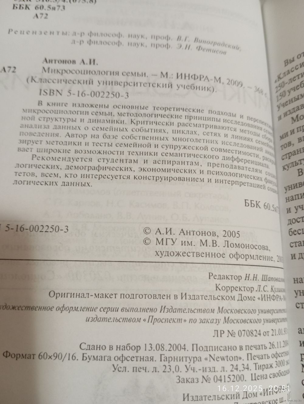 Микросоциология семьи. Антонов А. Редкая. М. Инфра М 2009. В прекрасном состоянии, тв переплет. 368 с. Тираж 3000. Возможность отправки Белпочтой, полная предоплата!