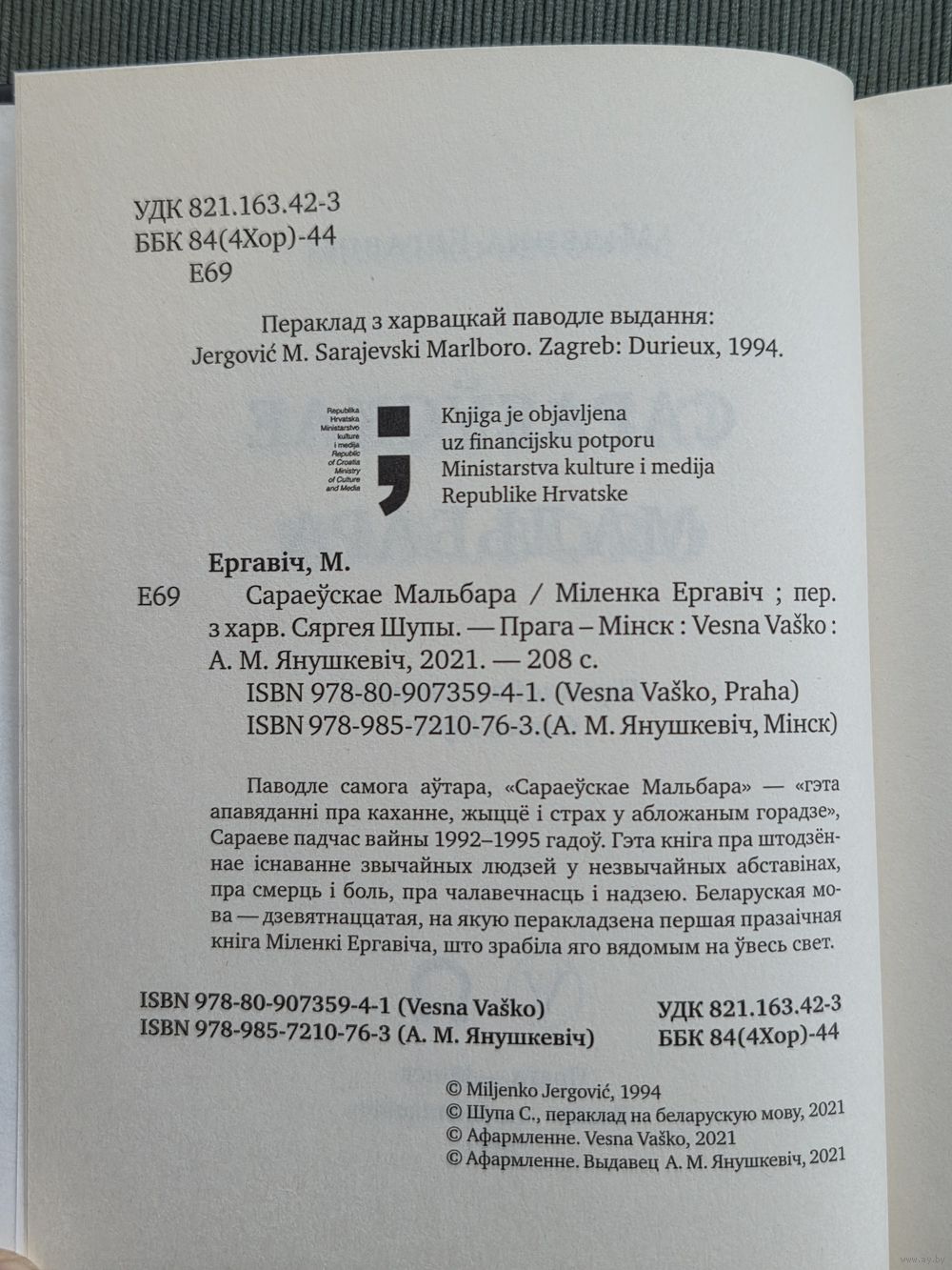 Міленка Ергавіч. Сараеўскае Мальбара. Выдавецтва Янушкевіч