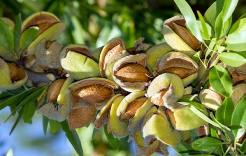 - Уход за миндальными деревьями Основной уход за миндалем включает в себя полив, обрезку, подкормку и рыхление почвы. Первый полив осуществляется в начале марта. После увлажнения почва может уплотниться, поэтому ее нужно будет подрыхлить на глубину около 10 сантиметров. После оттепели саженцу потребуется еще одно ведро воды. Летом полив вносится раз в две недели. Весной необходимы удаление дефектных побегов и обрезка, которая производится на второй год после посадки. При срезании особо крупных ветвей оставшийся сук смазывается кашицей (известь+медный купорос) Подкормка вносится со второго года после укоренения саженца. Весной земля удобряется селитрой — 20 грамм на ведро воды. Осенью растению понадобится 1 килограмм компоста, 20 грамм сернистого калия и 20 грамм двойного суперфосфата. На зиму утепляются даже морозостойкие сорта. Чтобы растение пережило холода, рекомендуется в начале августа удалить верхушечные почки на побегах. Перед заморозками деревья укрываются соломой или листвой. После первого снега стоит сформировать около ствола небольшой сугроб. Миндаль — исключительно насекомоопыляемая порода, у которой главный переносчик пыльцы — пчелы. Поэтому перед цветением в саду желательно разместить по 3-4 улья на гектар. - Болезни миндаля и их профилактика Предотвратить самые распространенные болезни миндаля возможно с помощью своевременной обработки. Общая профилактика предполагает опрыскивание дерева бордоской жидкостью весной до распускания почек и после опадения листы осенью. Часто миндаль поражает тля. Чтобы избавиться от нее, нужно покрыть растение раствором карбофоса или хозяйственного мыла.