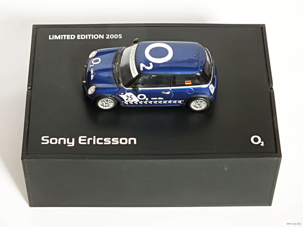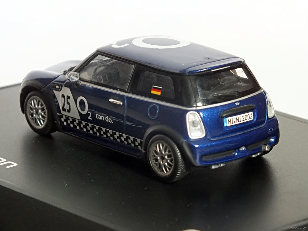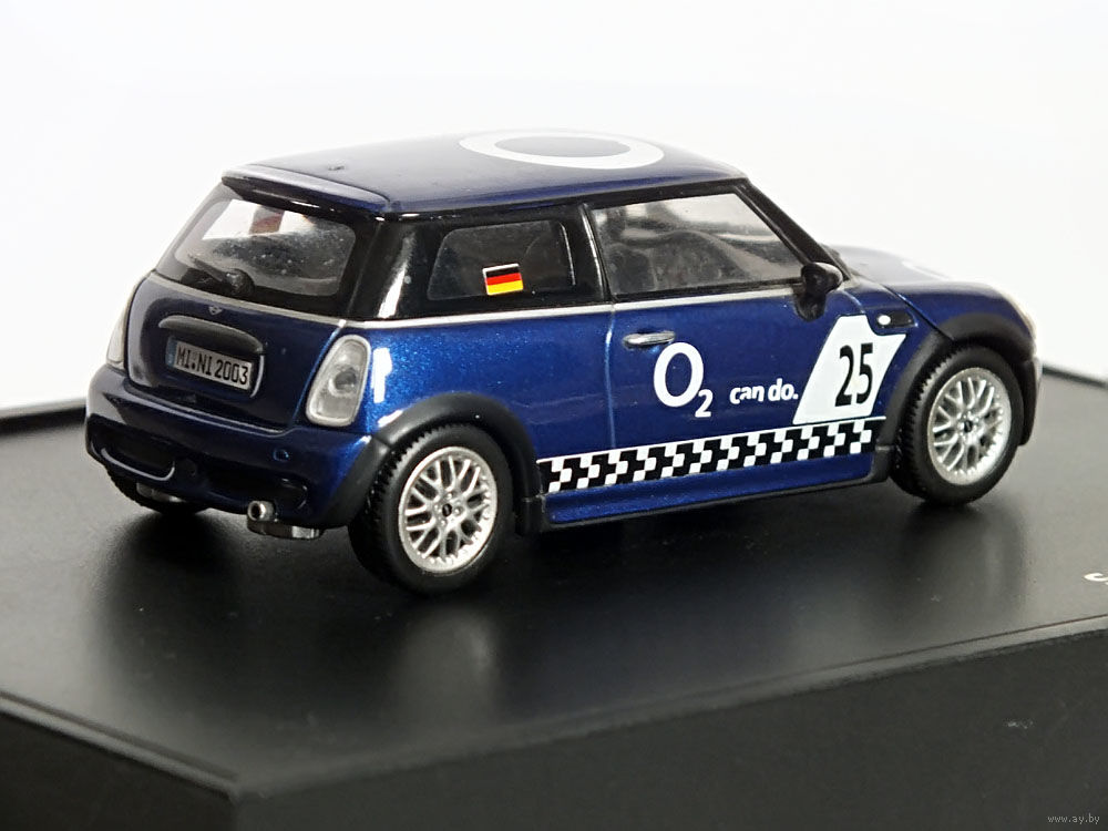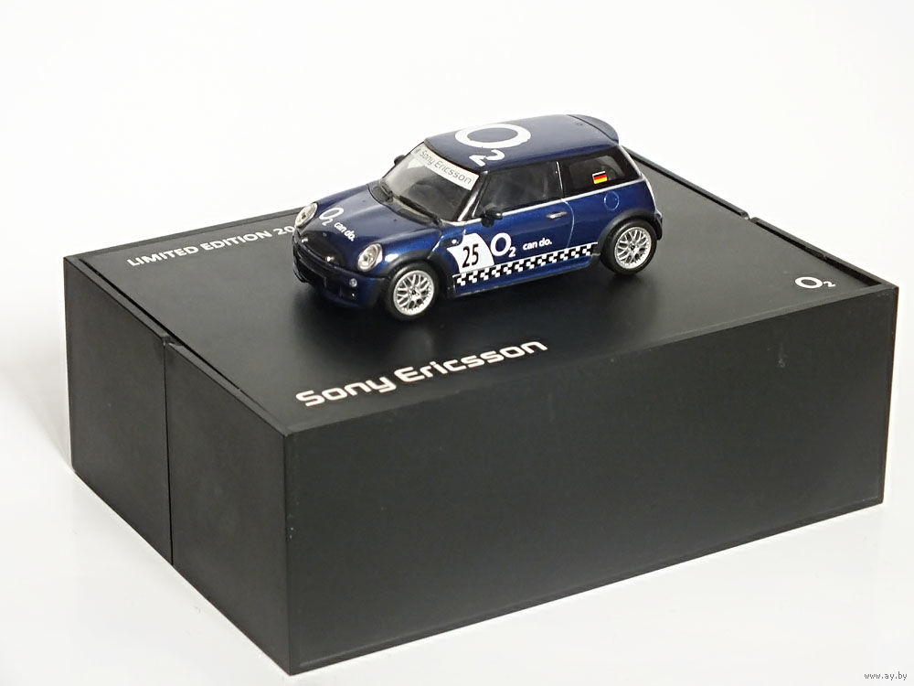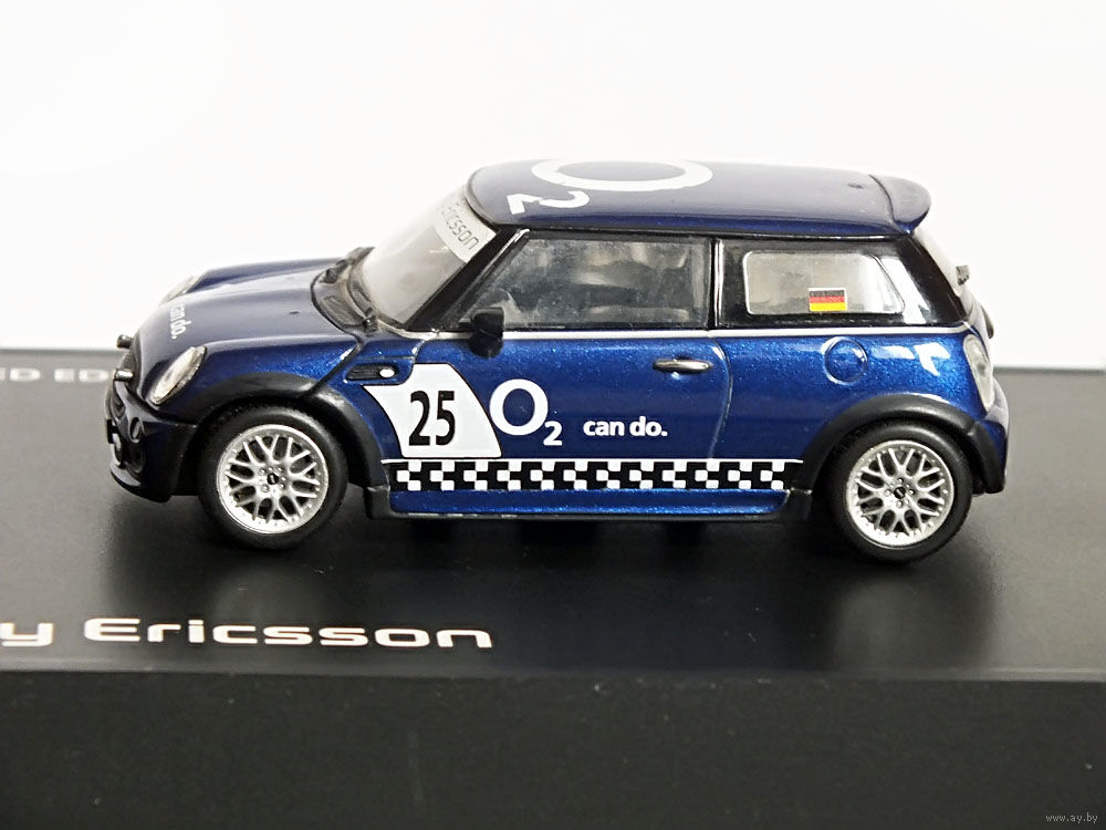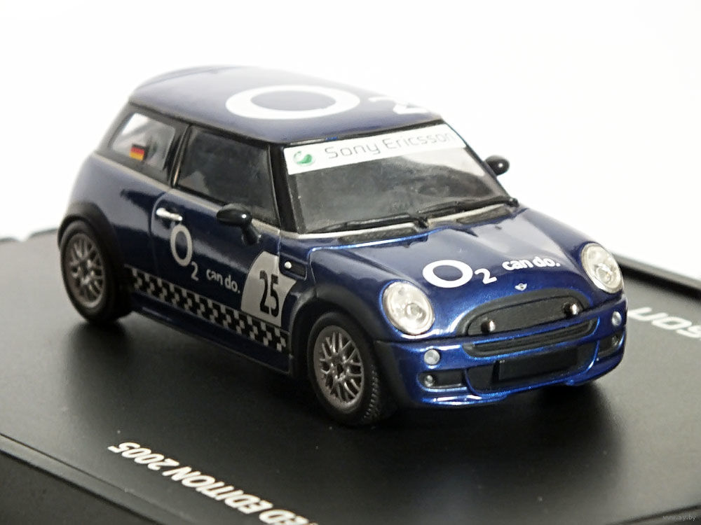 Масштабная модель автомобиля Mini Cooper One Aerodynamic Package Sony Ericsson O2 (ДЕФЕКТ). Масштаб 1:43. Производство "Minichamps".