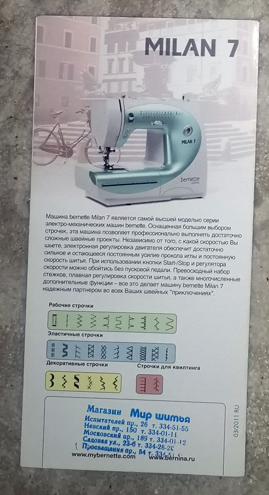 Мини каталог швейных машин фирмы Bernina-Швейцария серия Milan