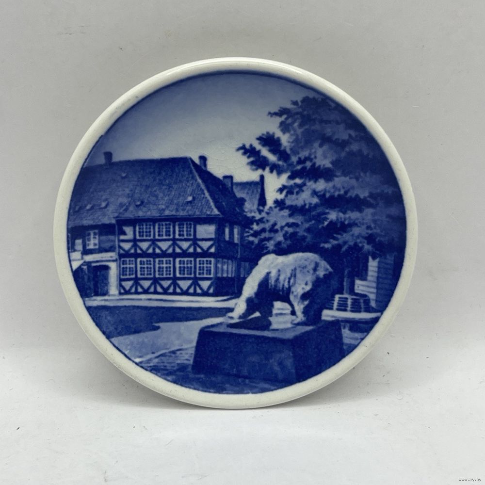 Винтажная коллекционная плакетка от Royal Copenhagen, миниатюрная настенная тарелочка с кобальтовым подглазурным изображением датской достопримечательности Czarens Hus, Nykøbing. Дания. Подглазурное клеймо, номер 69-2010. Серия 2010 выпускалась с 1950 по 1973 г.г. Диаметр 8 см. Отверстия для подвеса.