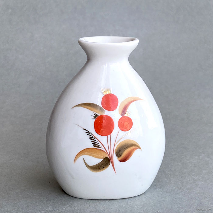 Редкая ваза-миниатюра «Рябина». СССР, ЗХК Полонне. Фарфор, ручная роспись, позолота. Клеймо 1956-1972 г. Высота 11см. Состояние отличное.