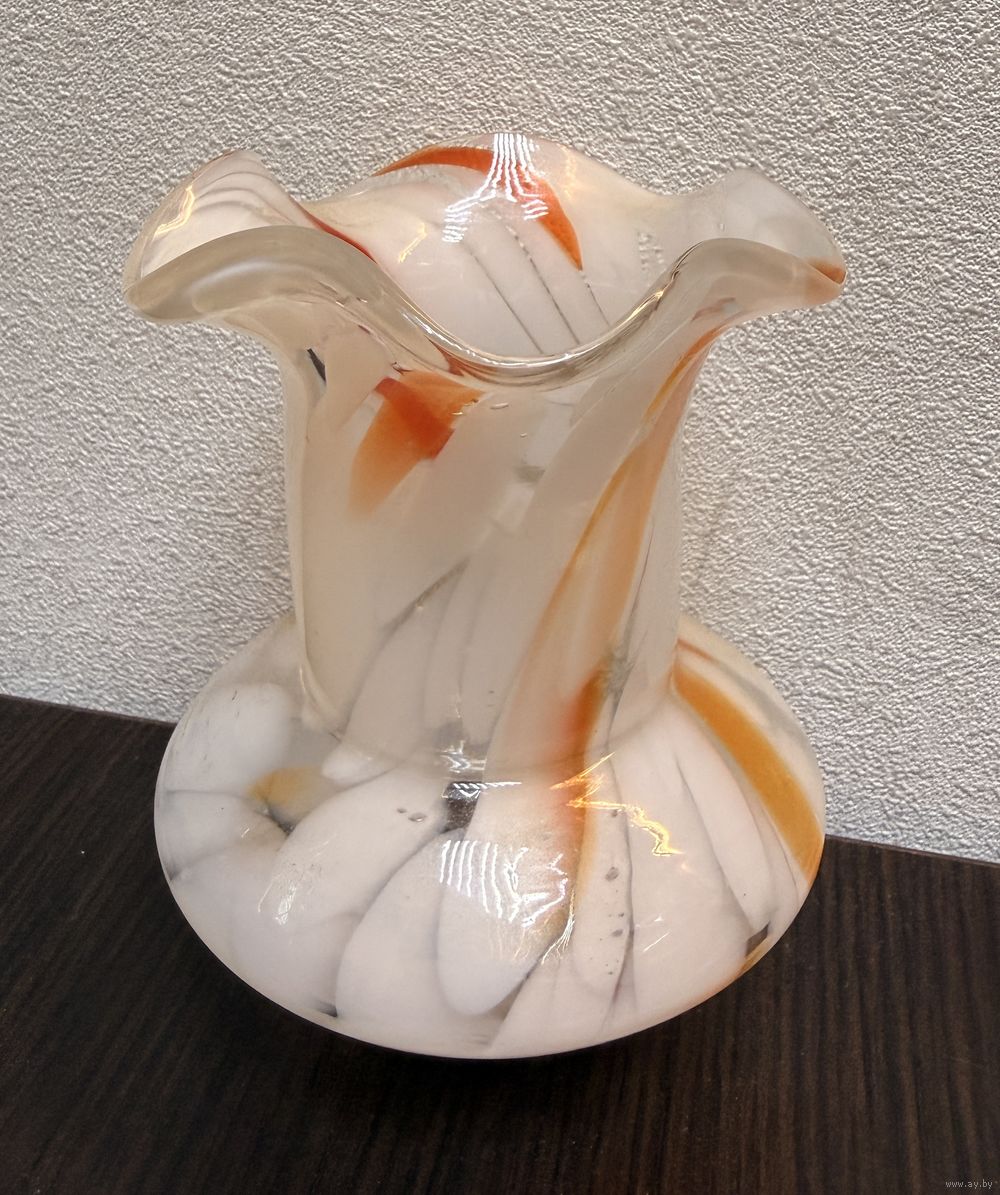 Миниатюрная винтажная ваза из гутного стекла, СССР.