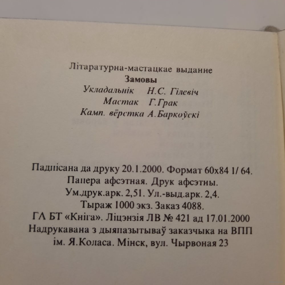 Миниатюрное издание. Замовы, укладальнік Н.С.Гілевіч. Мінск 2000г.