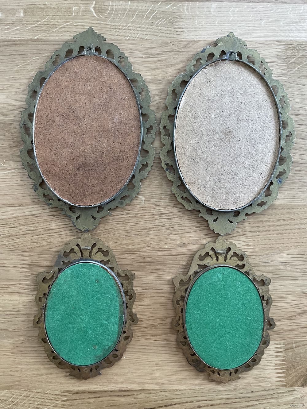 Рамки — из латуни с богатым декоративным узором, придающим антикварный вид.