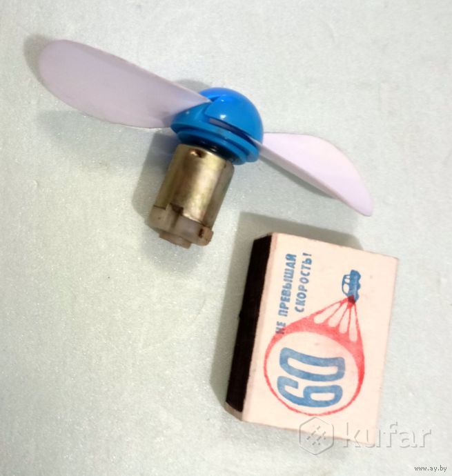 Питается от постоянного тока напряжением 4,5-12 Вольт. Обороты зависят от поданного напряжения. Состояние оценивайте по фото. Он рабочий, проверено. Может быть использован как вентилятор или для привода игрушек, к примеру, привода в движение кораблика, лодки, машинки.