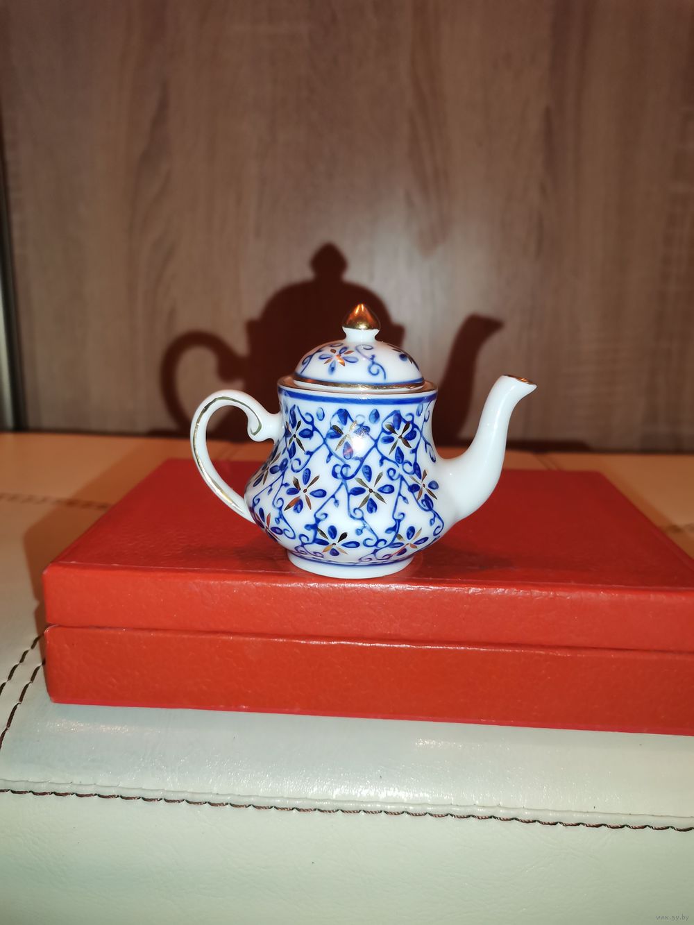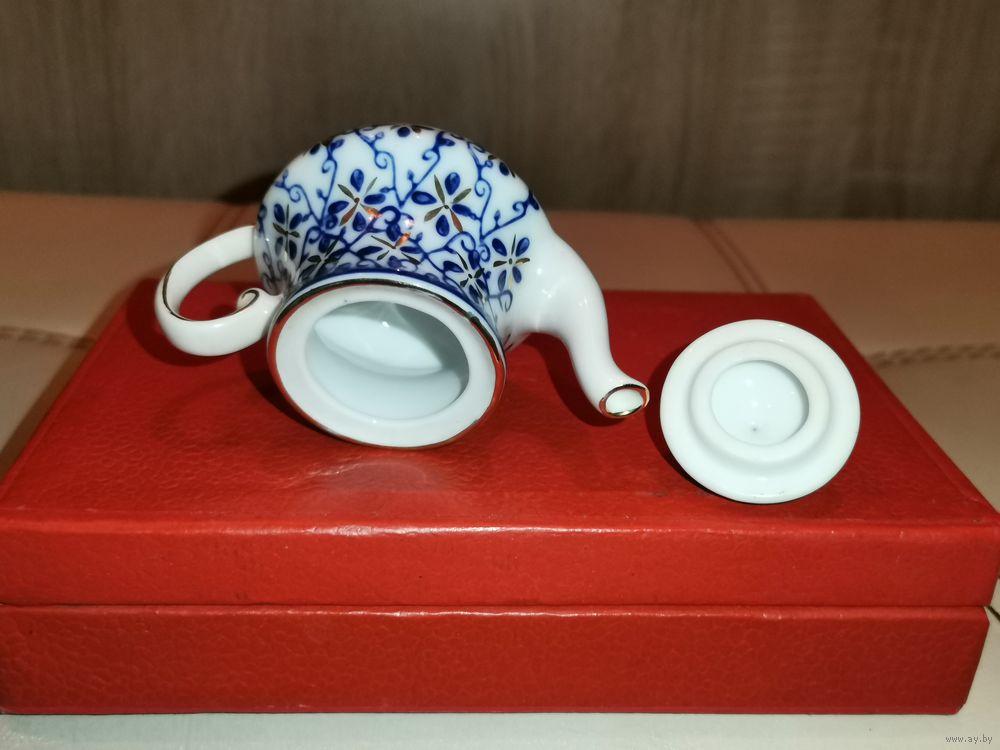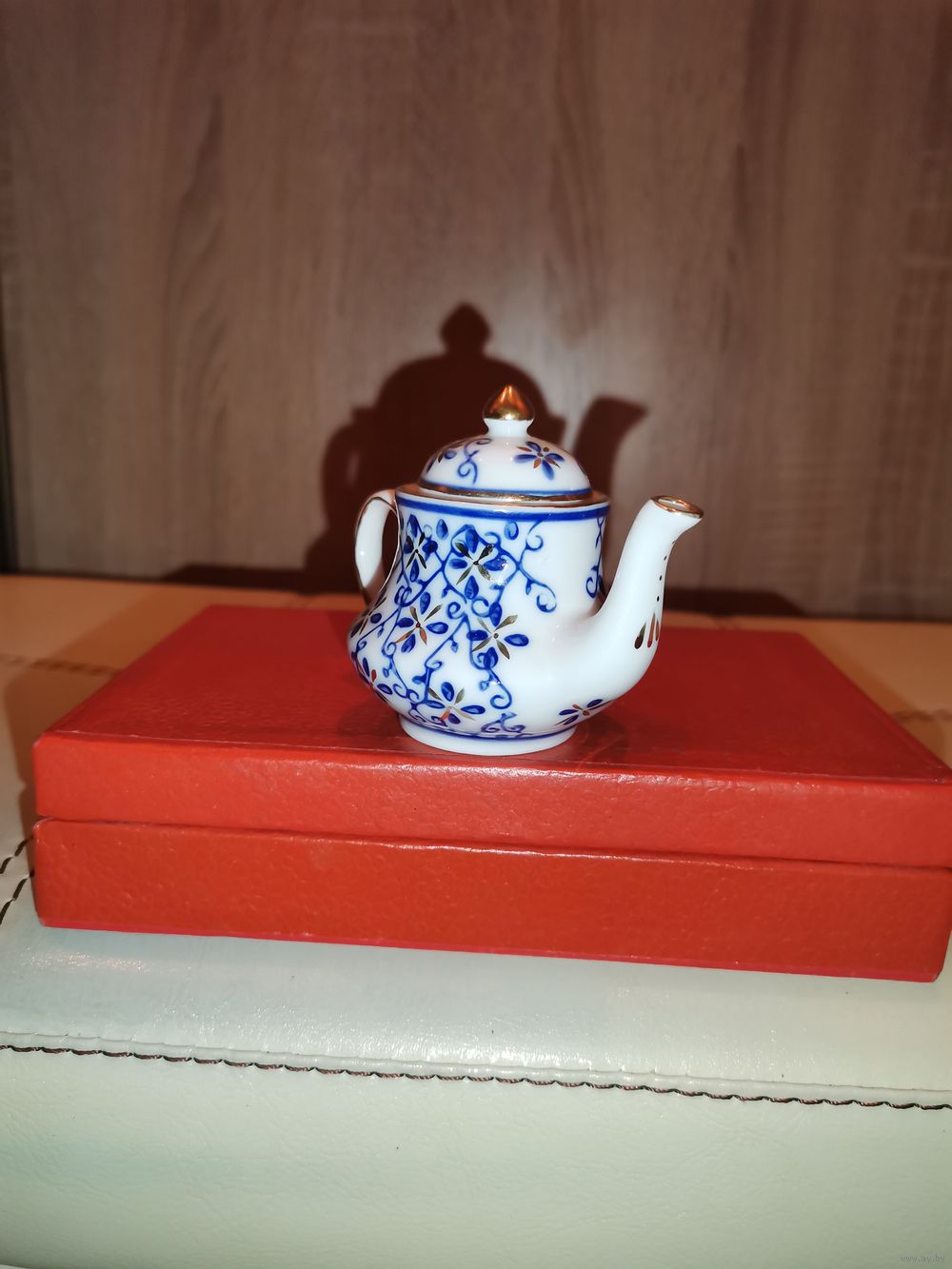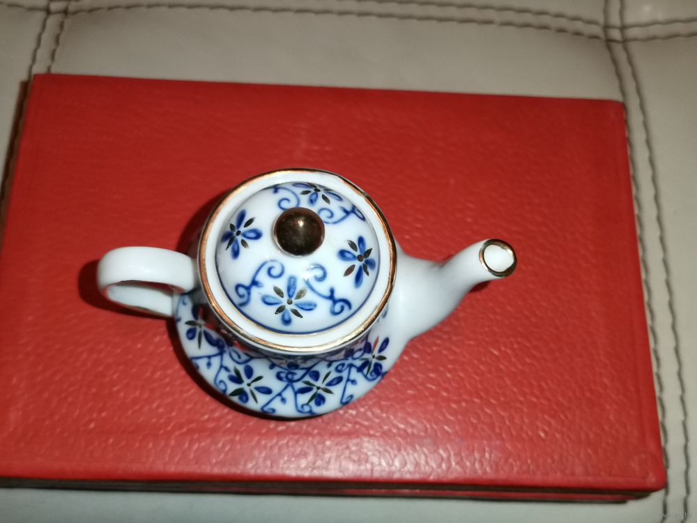 Миниатюрный, фарфоровый чайник, высота 7 см., клеймо, без сколов и трещин.