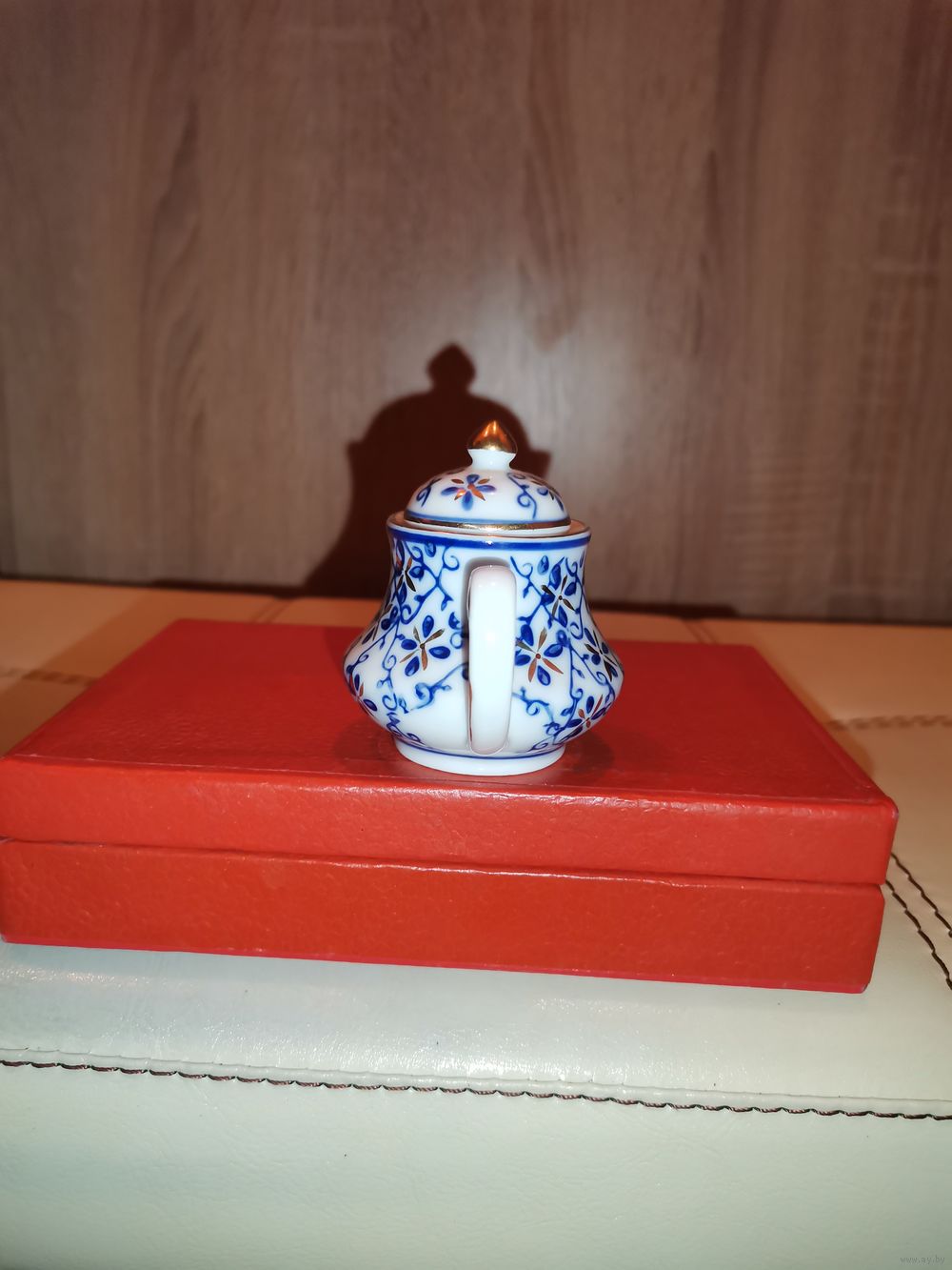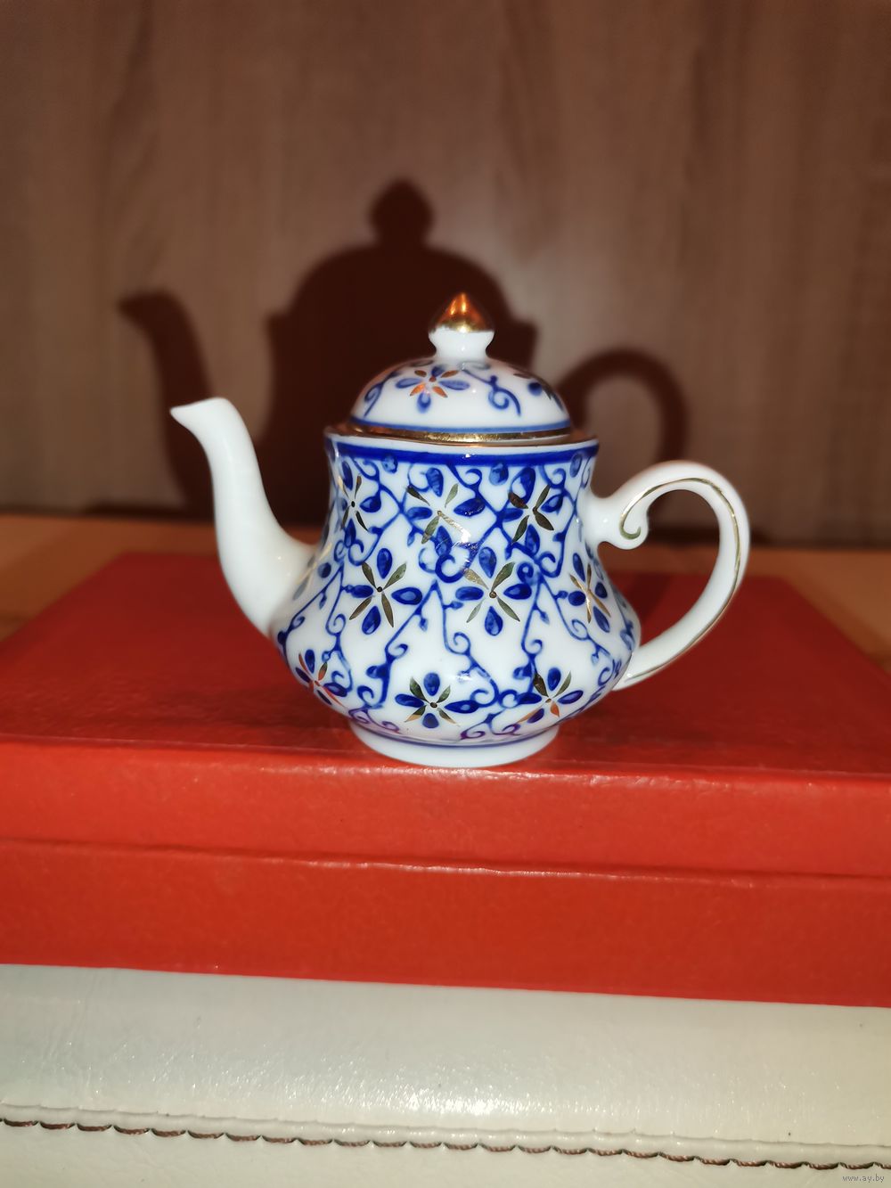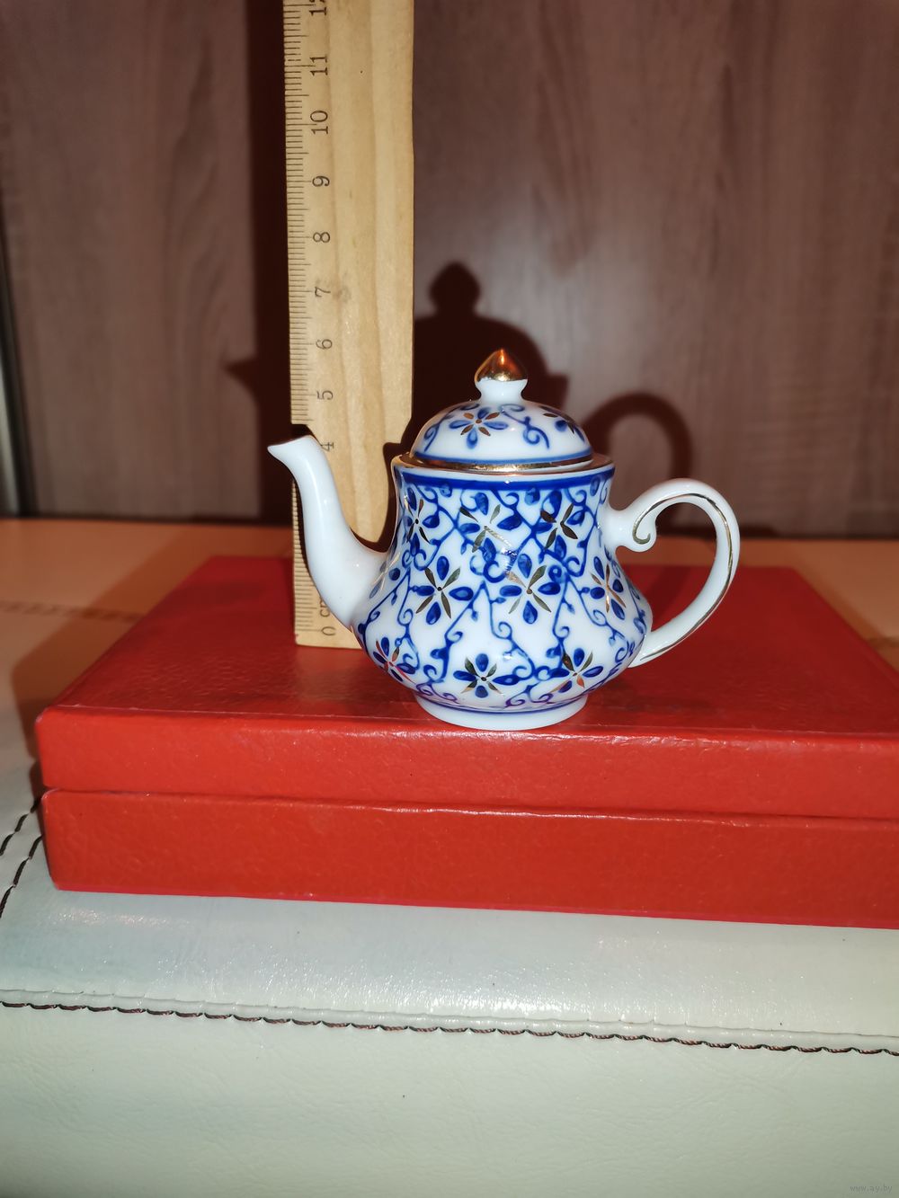 Миниатюрный, фарфоровый чайник, высота 7 см., клеймо, без сколов и трещин.
