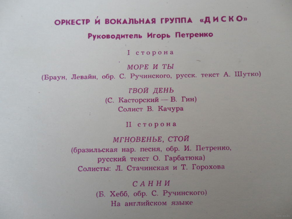 Миньон гибкий - Оркестр и вокальная группа "Диско" (И. Петренко) - МОЗГ