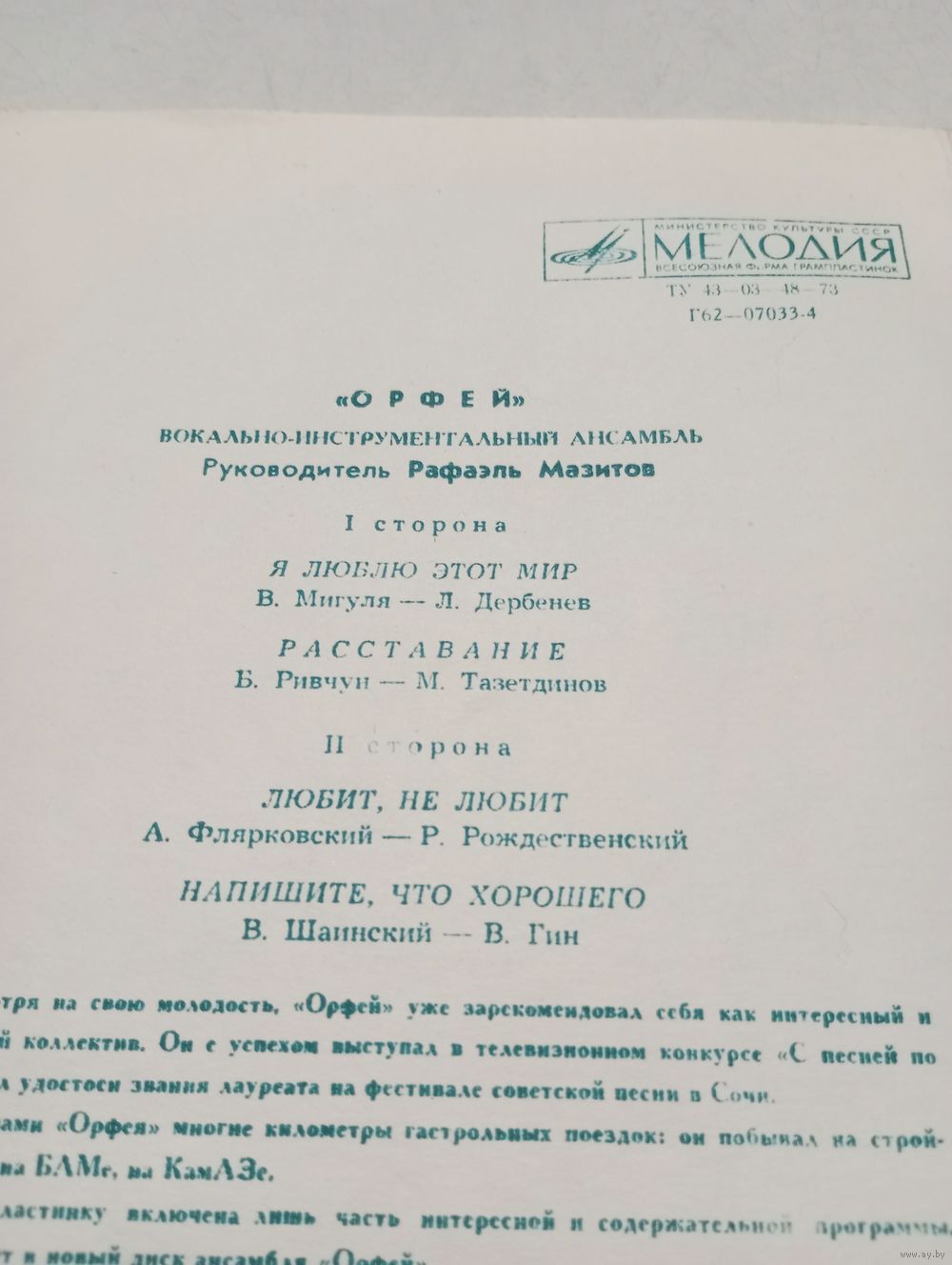 | VG+ (изгиб края пластинки - игла проходит) | |