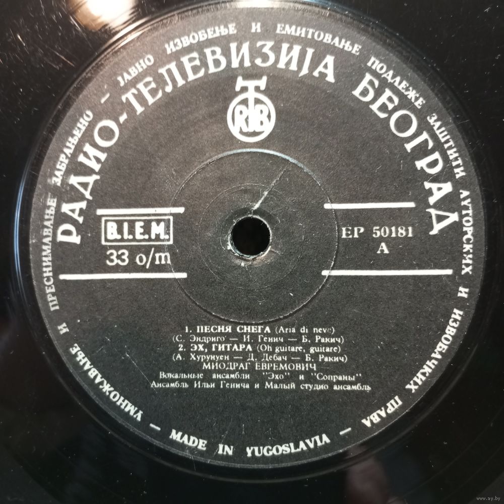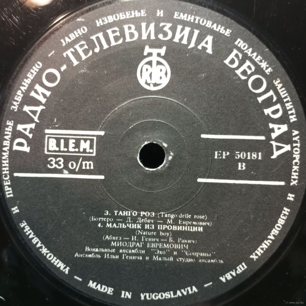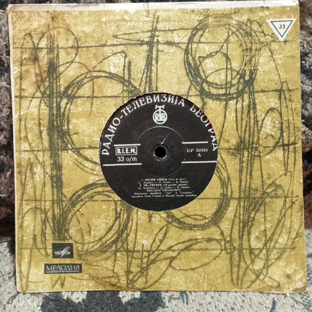 Миньон - Миодраг Евремович, Вок. ансамбли "Эхо" и "Сопраны" - Песня снега. Эх, гитара. Танго роз. Мальчик из провинции (Nature boy) - RTB, Югославия - Аккорд, Ленсовнархоз, 1963 г.