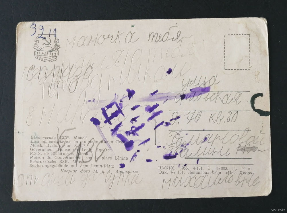 Минск. Дом Правительства. Площадь Ленина. Белорусская ССР. Виды городов. Пейзажи. ИЗОГИЗ 1956 год #0233-V2P117