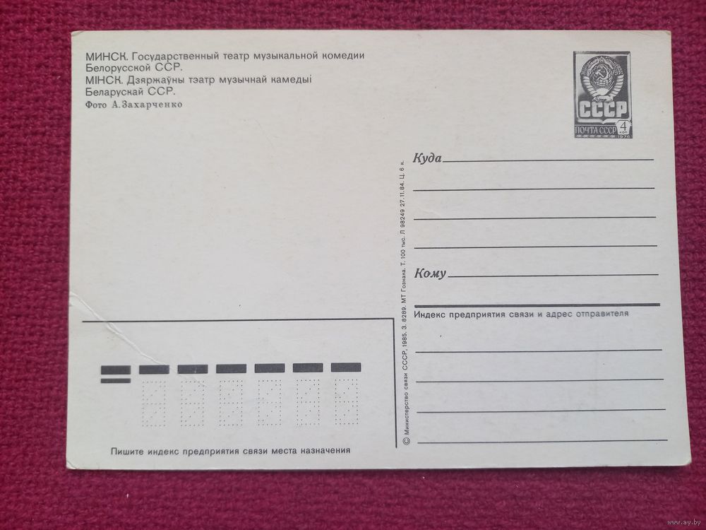 Минск. Государственный театр музыкальной комедии Белорусской ССР ! Захарченко 1985 г. Чистая.