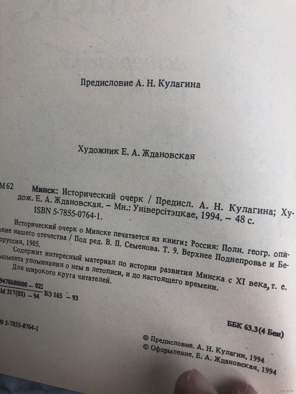 Минск: Исторический очерк / Предисл. А. Н. Кулагина; Худож. Е. А. Ждановская. - Мн.: Універсітэцкае, 1994. - 48 с. ISBN 5-7855-0764-1.