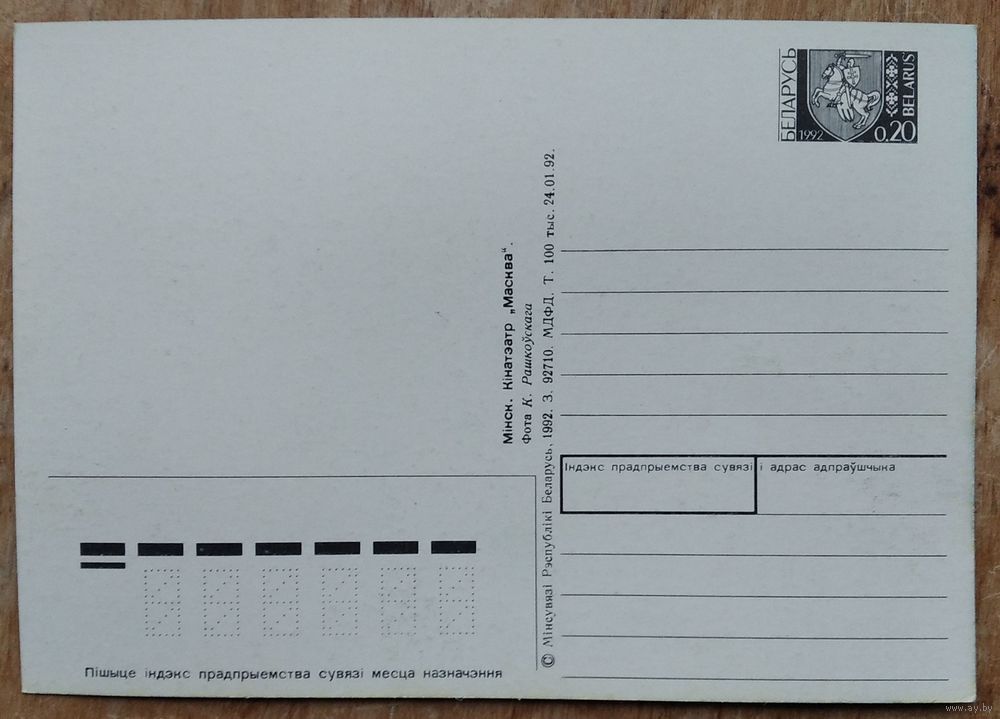 Минск. Кінатэатр "Масква". 1992 г. ПК. Чыстая.