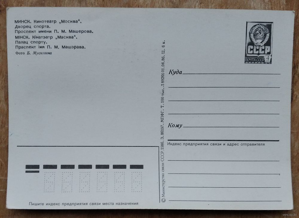 Минск. Кинотеатр "Москва". Дворец спорта. 1986 г. ПК. Чистая.
