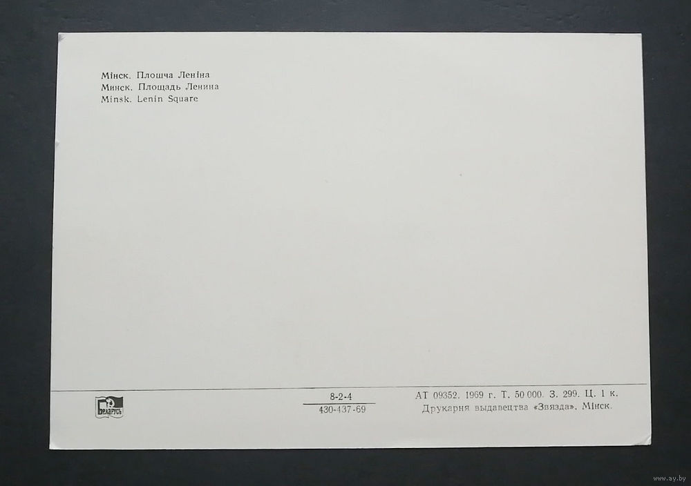 Минск. Площадь Ленина. Белоруссия. Виды городов. Пейзажи. 1969 год. Чистая #0188-V2P94