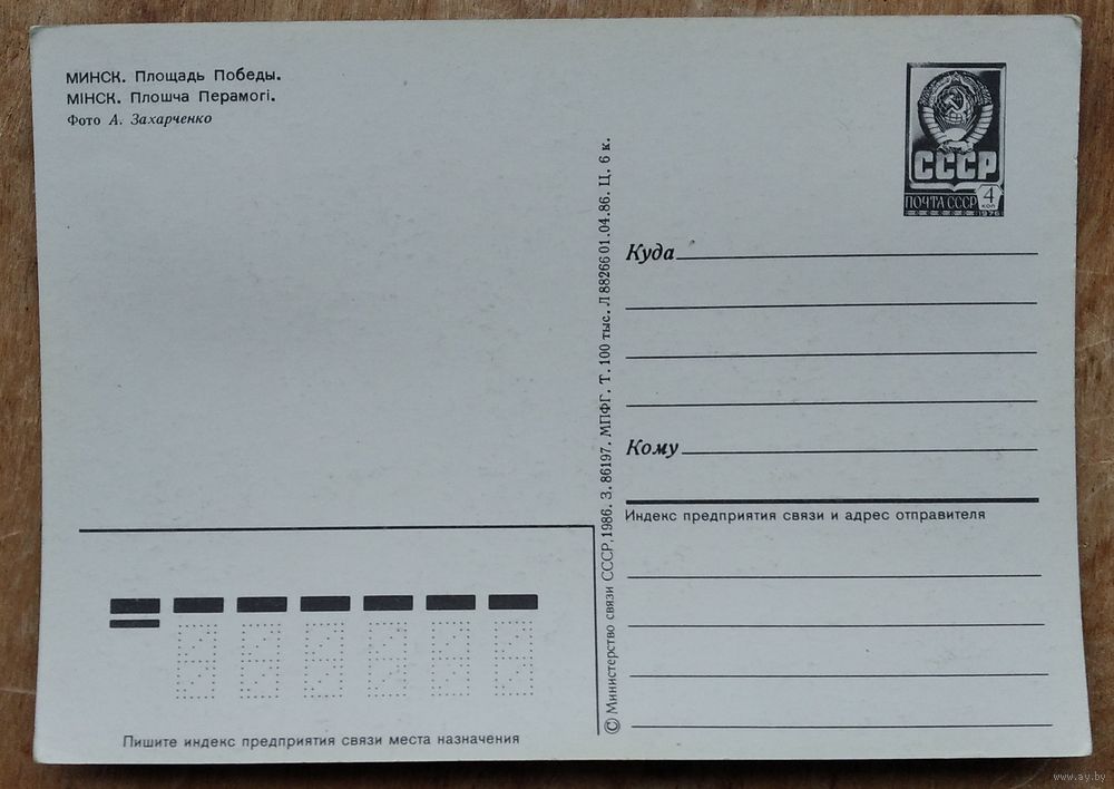 Минск. Площадь Победы. 1986 г. ПК. Чистая.