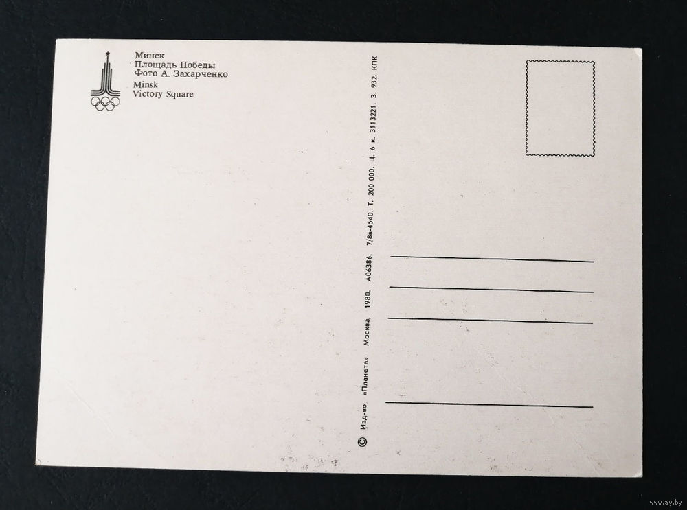 Минск. Площадь Победы. Олимпиада 1980. БССР. Виды городов. Чистая #0261-V2P131
