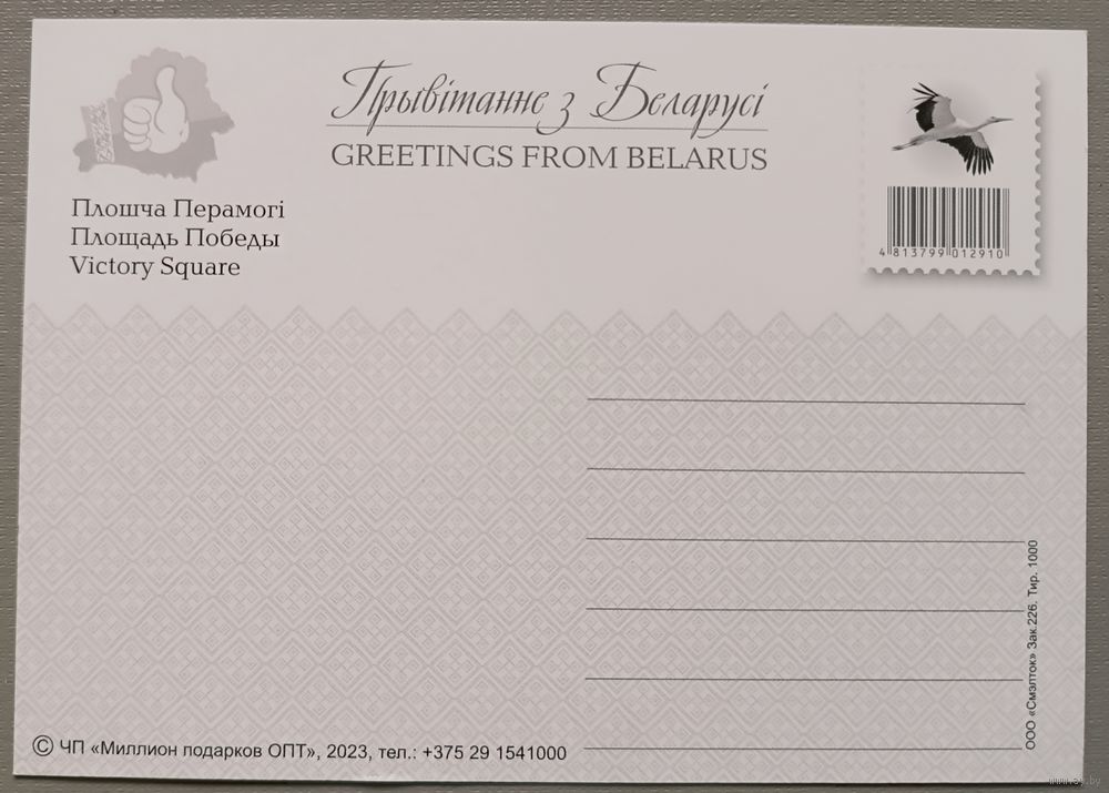 Минск. Площадь Победы. Сувенирная открытка