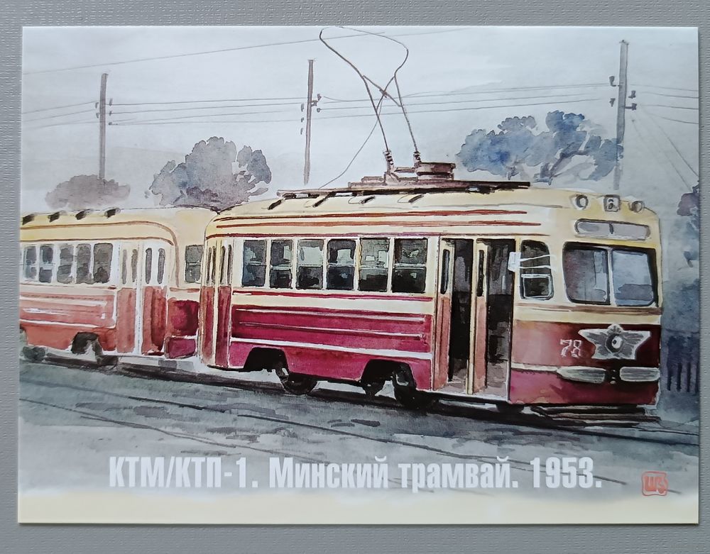 Минский трамвай, 1953г. Худ. В.В.Шарков. Авторская открытка