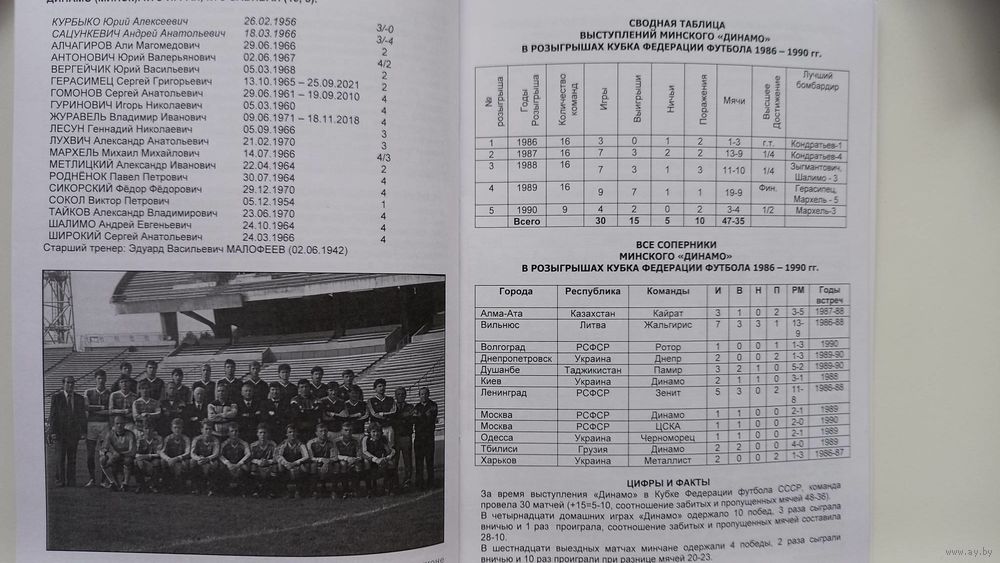 Минское Динамо в Кубке федерации футбола СССР справочник