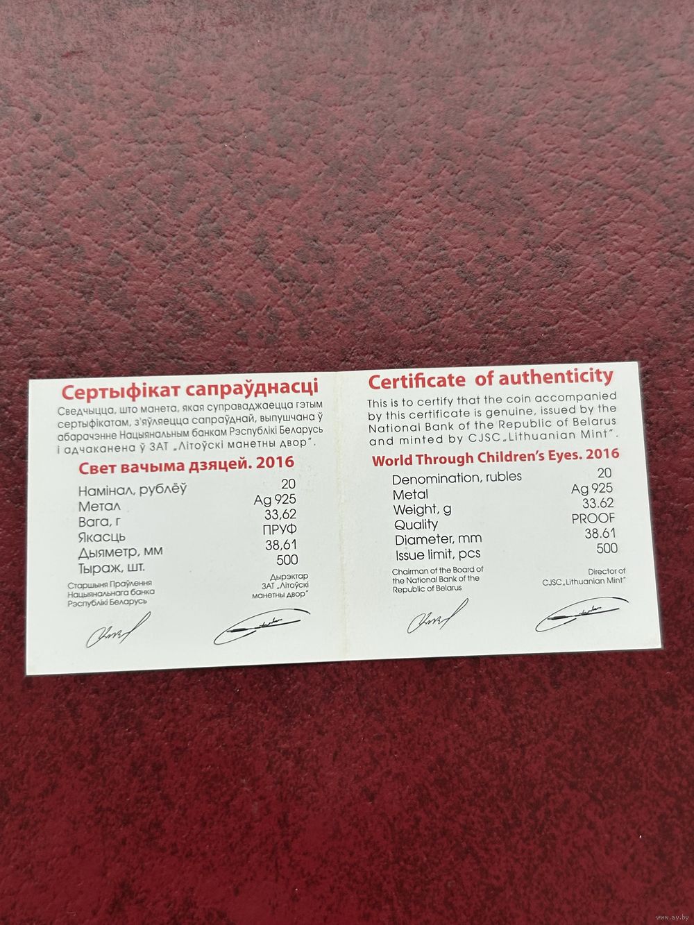 | Вес монеты | 33,62 г |