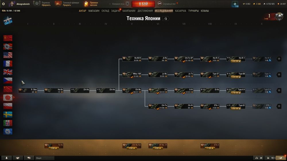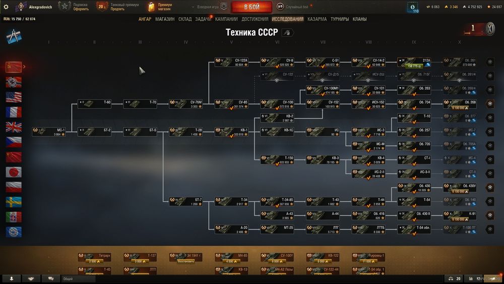 Продам. Все ветки прокачены.1-10 ур. Кроме артиллерии СССР 9-10 ур. Кол-во техники-224 ед. Много техники не из веток, около 40 единиц, + около 20 под восстановление. На каждой машине прокаченный экипаж, от 1 до 4 навыков. На все вопросы отвечу-звоните, пишите.