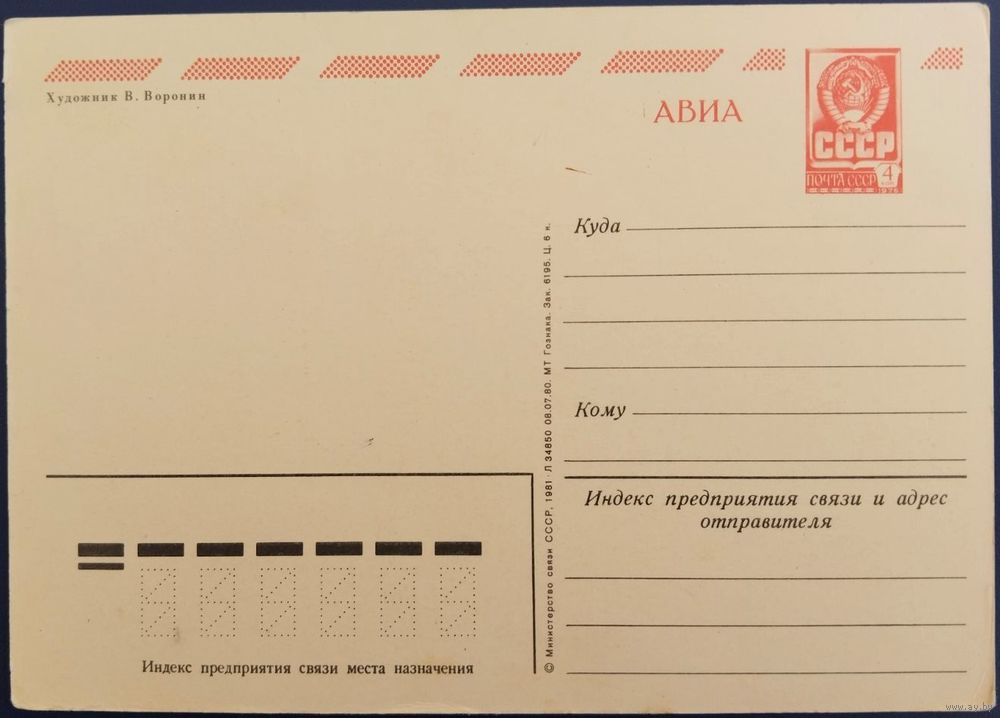 Мир,труд,май. С праздником! Чистая. Худ.В.Воронин. 1980 г.