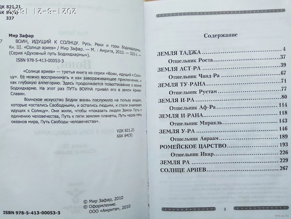 В книге впервые в мире изложена жизнь человека, создавшего боевые искусства Индии, Ирана, Тибета, Китая, Древней Руси, создавшего понятие Путь Воина, создавшего искусство жить по законам Сокровенной Красоты Мира - Дзэн . Впервые читатель узнает, что значит Путь Ариев-Свободных, узнает значение знаков наших Отцов, узнает об искусстве исцеления и оздоровления тела и Духа, которое наши предки называли дорогой к Солнцу . Это - книга-приключение, книга-схватка, книга-тайна, книга-откровение . Это произведение - благодарность нашим отцам-первопредкам, тем, кто оставил нам в наследство Свободу . Свободу и дорогу к Солнцу .