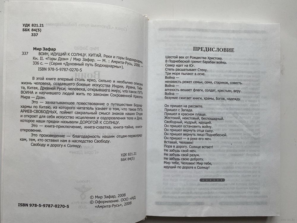 Во второй книге серии Воин, идущий к Солнцу, впервые в мире изложена жизнь человека, создавшего боевые искусства Индии, Ирана, Тибета, Китая, Древней Руси, создавшего понятия Путь Воина, создавшего искусство жить по законам Сокровенной Красоты Мира-Дзэн. Это-захватывающее повествование о путешествии Бодхидхармы по Китаю, из которого читатель узнает о том, что такое Путь Ариев-Свободных, поймет сакральный смысл знаков наших Отцов и откроет для себя искусство исцеления и оздоровления тела и Духа, которые наши предки называли Дорогой к Солнцу.