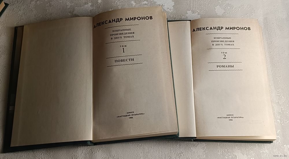Миронов Александр. Избранные произведения в 2-х томах. Повести. Мн.: Маст. літ., 1986, стр. 495 +478.