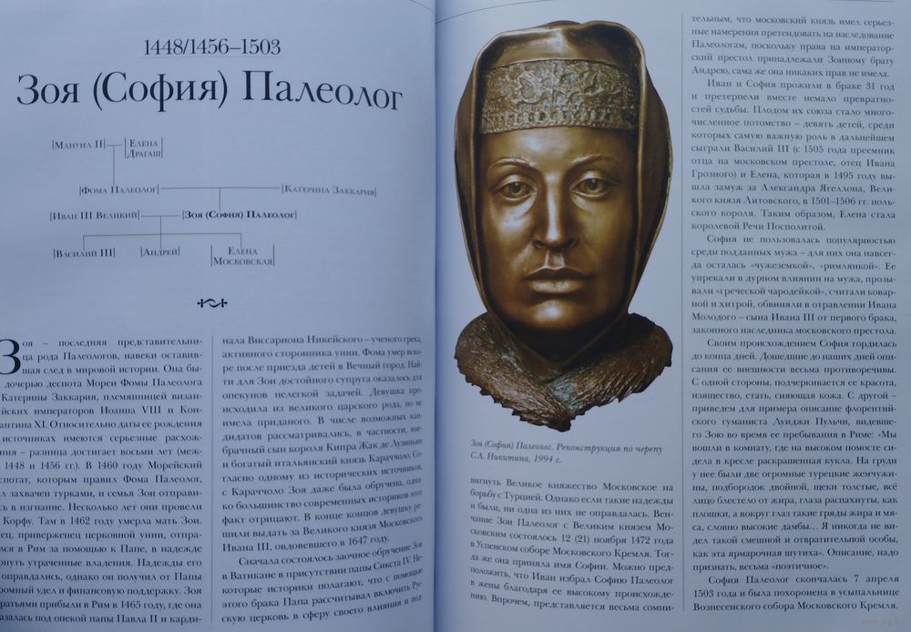 Палеологи — последняя и наиболее долговечная династия императоров в Византии, правившая на протяжении двух столетий — со времени изгнания Михаилом VIII из Константинополя крестоносцев в 1261 году до взятия Константинополя турками в 1453 году. Софья Палеолог, она же Зоя Палеологиня (греч. Ζωή Σοφία Παλαιολογίνα; ок. 1455 — 1503) — Великая княгиня Московская, вторая жена Ивана III Великого, мать Василия III, бабушка Ивана IV Грозного.