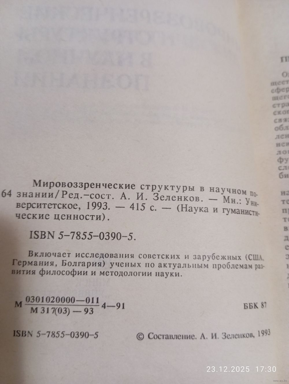 Мировоззренческие структуры в научном познании. Ред -сост. А. Зеленцов. Мн. Университетское 1993. В хорошем состоянии, тв переплет. Тираж 685(!). Возможность отправки Белпочтой, полная предоплата