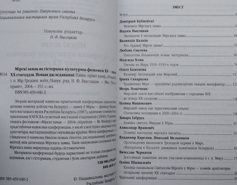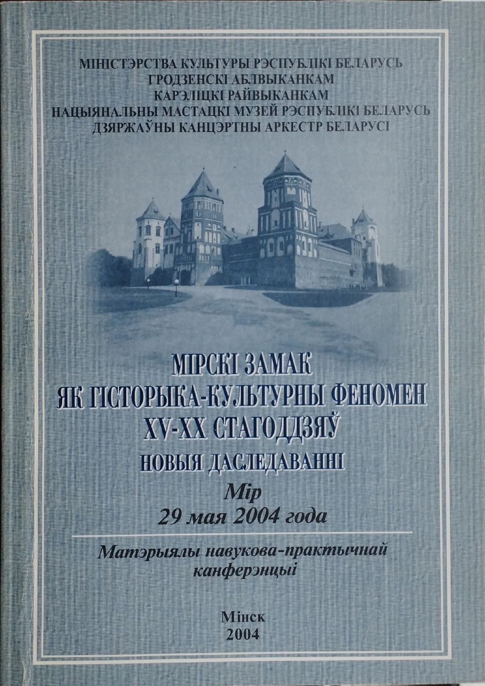 Вялікі фармат. Тыраж 750 экз. 192 стар. Мiрскi замак як гiсторыка-культурны феномен XV ― пачатку XX стагоддзя. Новыя даследаваннi: навукова-практычная канферэнцыя, 29 мая 2004 г., г. п. Мір.