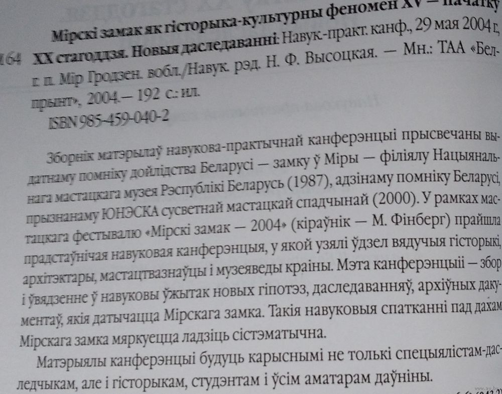 Мiрскi замак як гiсторыка-культурны феномен XV - пачатку XX стагоддзя. Новыя даследаваннi: навукова-практычная канферэнцыя, 29 мая 2004 г., г. п. Мір. Мінск. Белпрынт. 2004 г. 192 стар. Мяккая вокладка.