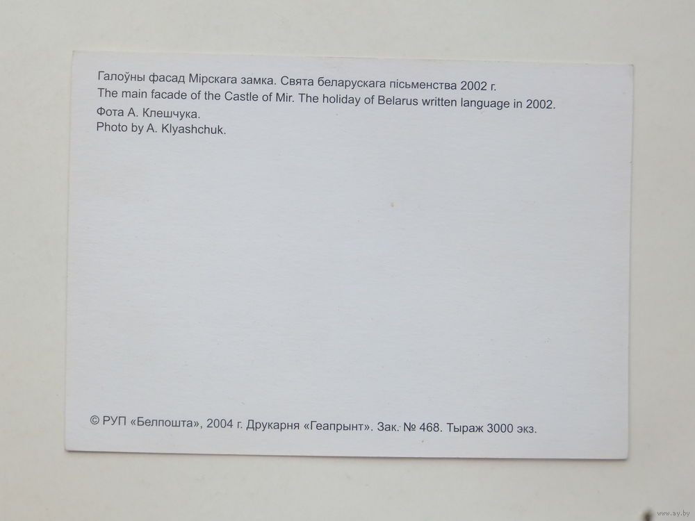 Мирский замок открытка 2004 г 10х15 см