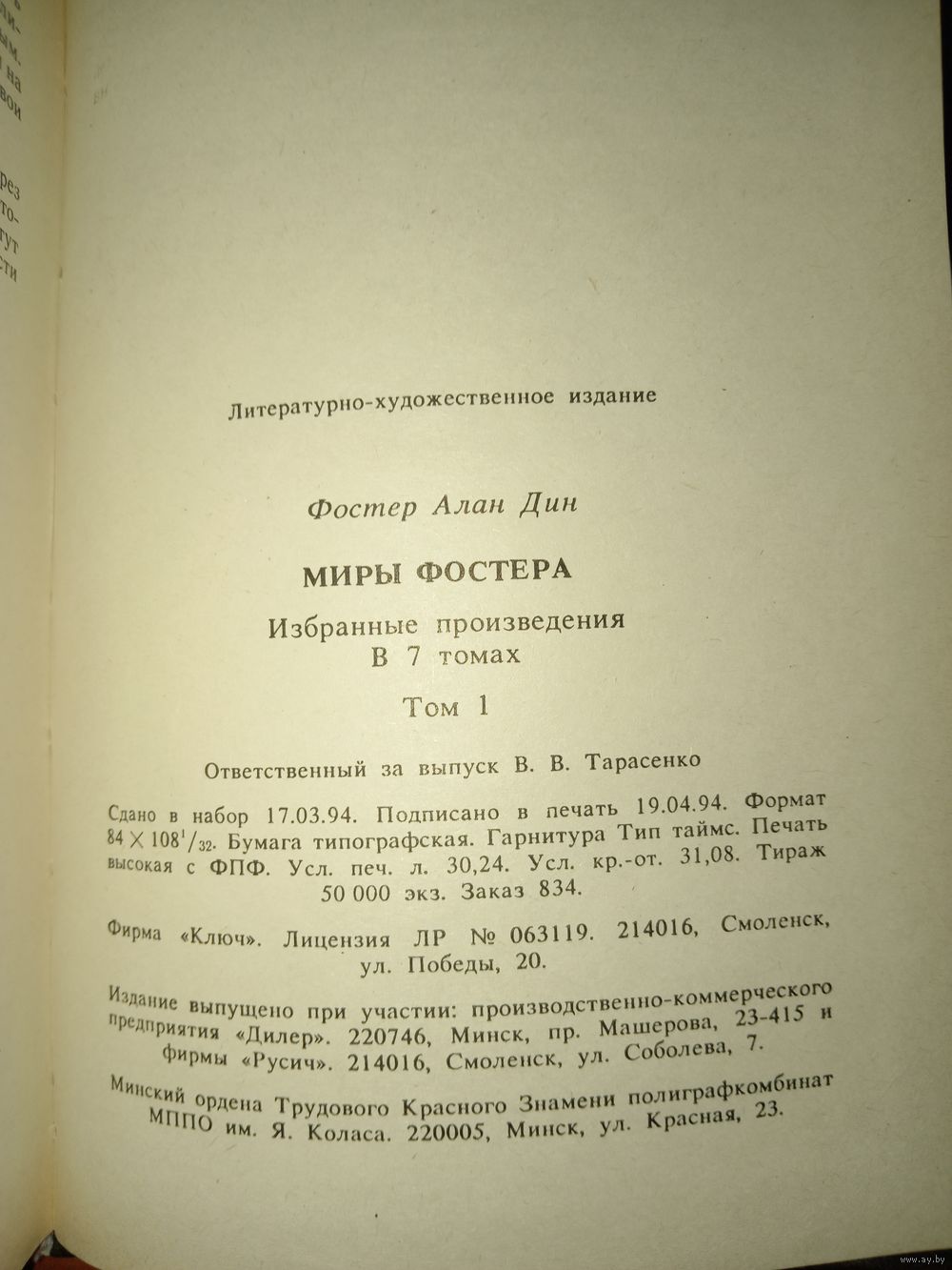 | На форзацах, кое-где - на обложках, проступили небольшие тёмные пятна (характерный дефект Минской полиграфической продукции 90-х). Состояние отражено на фото. | |