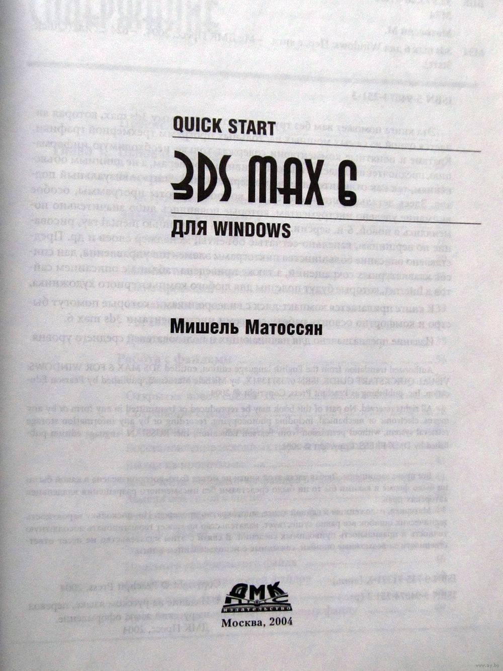 Мишель Матоссян 3Ds Max 6 для Windows Быстрый старт В комплекте диск ДМК Пресс Москва 2004