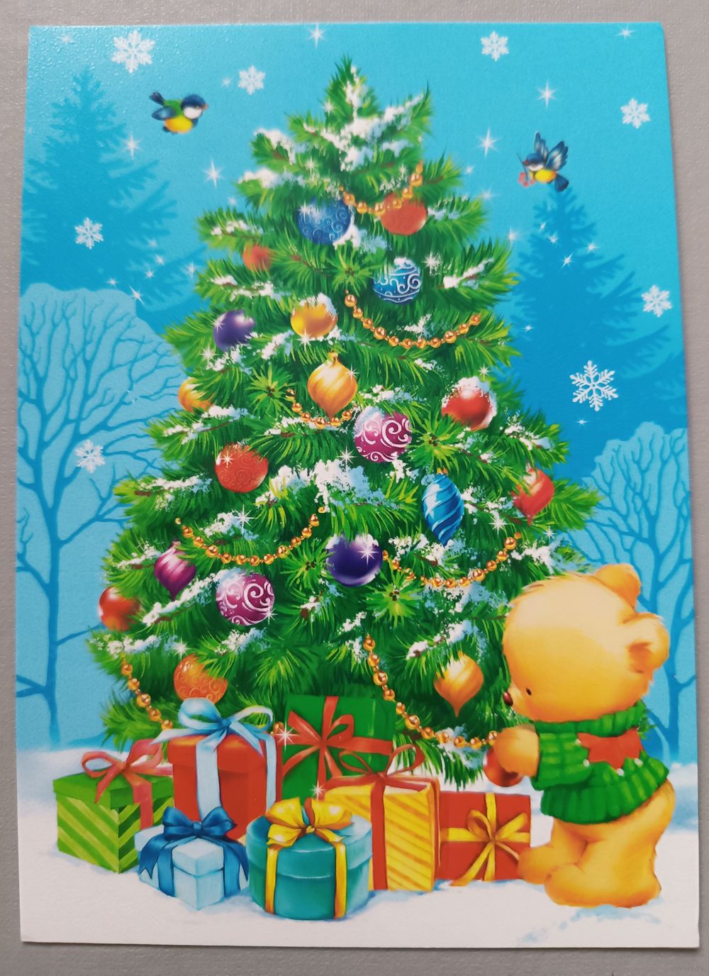 Мишка и подарки. Открытка