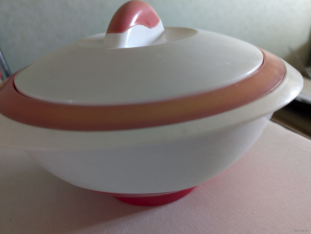 Миска-термос практически новая, никогда не использовалась, но от долгого хранения немного поблек красный цвет на крышке, потому я поставила определение "как новое", а не "новое".
